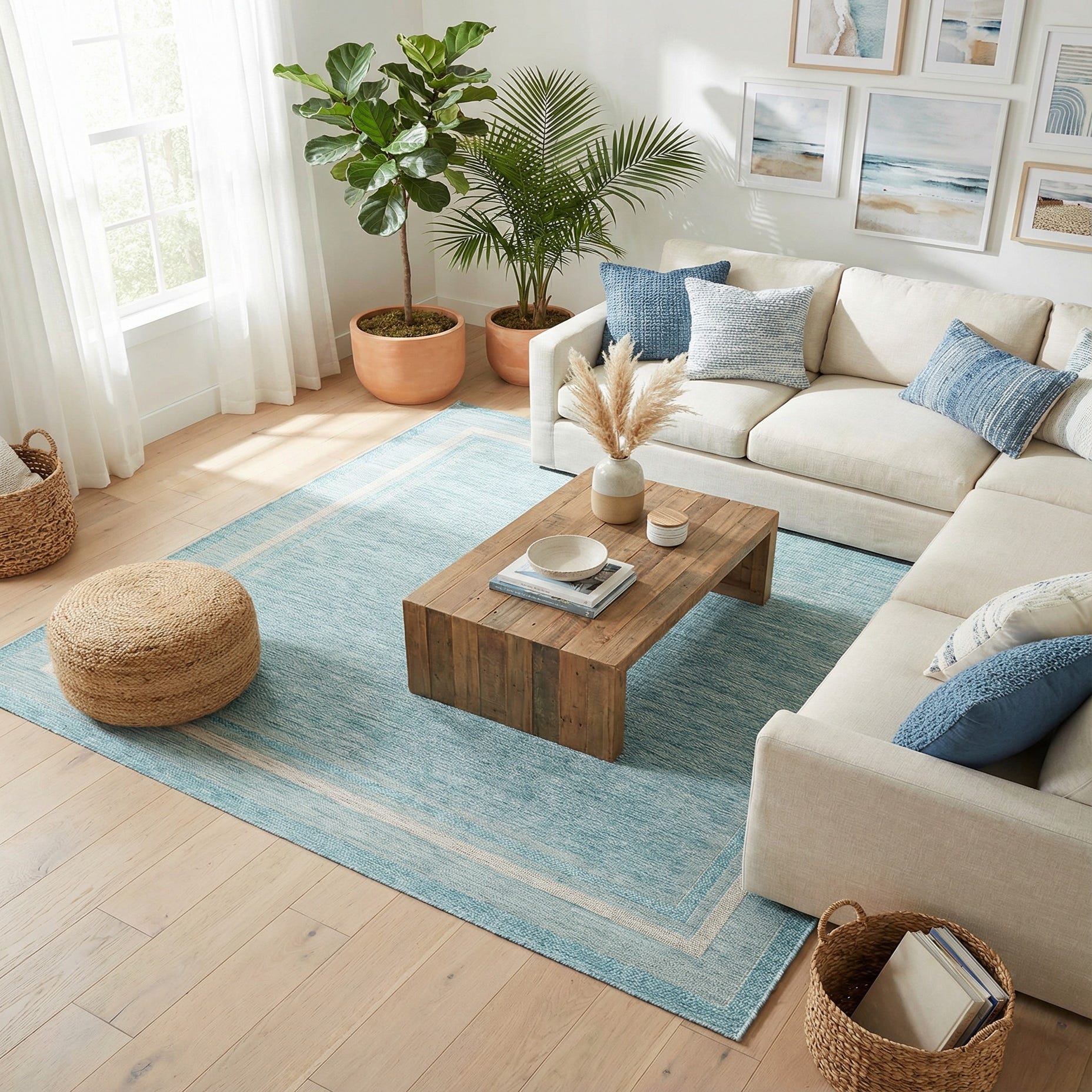 7' x 10' Washable Border Indoor / Outdoor Rug