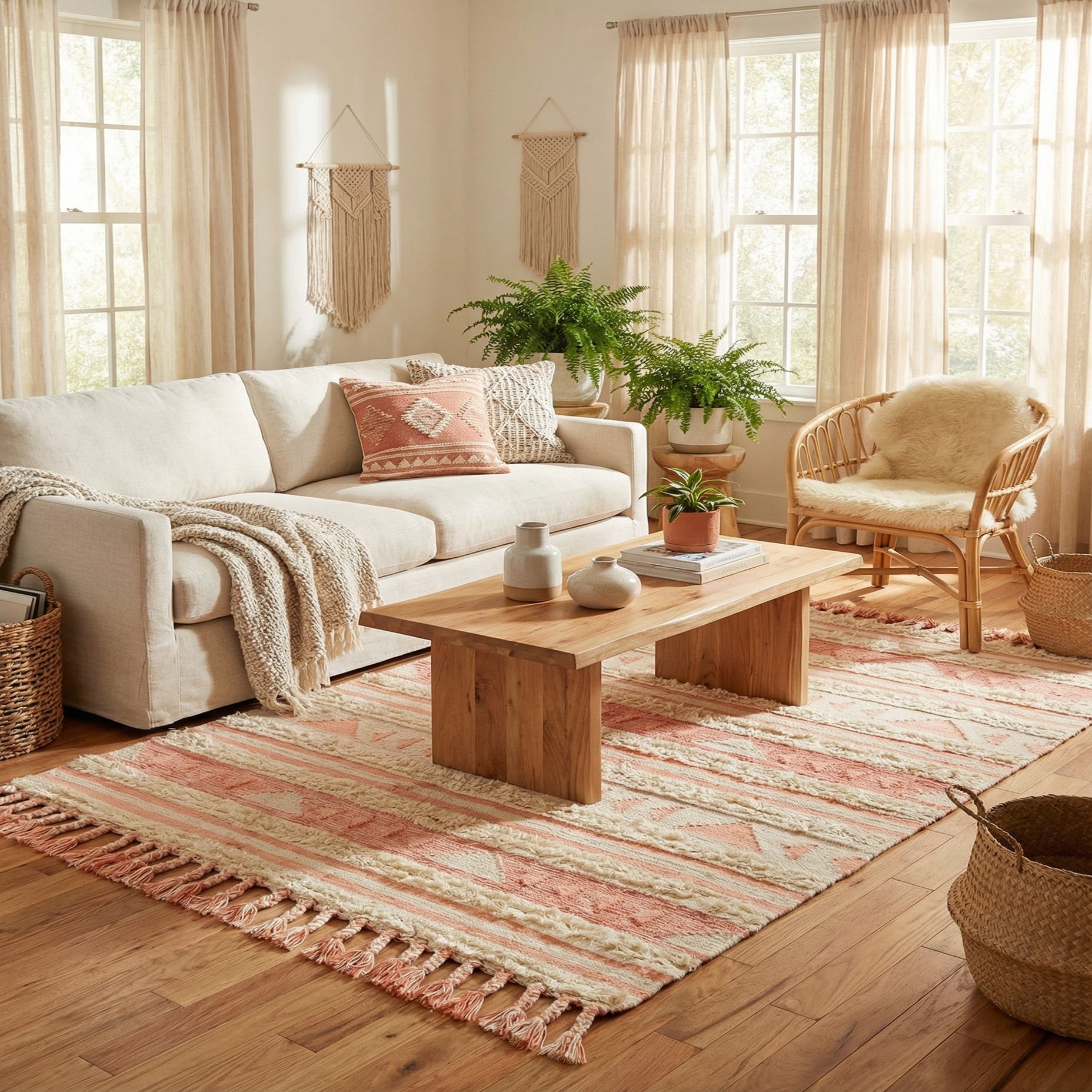 Primary color is Baby Pink. Colors in this rug include: Baby Pink, Ivory.