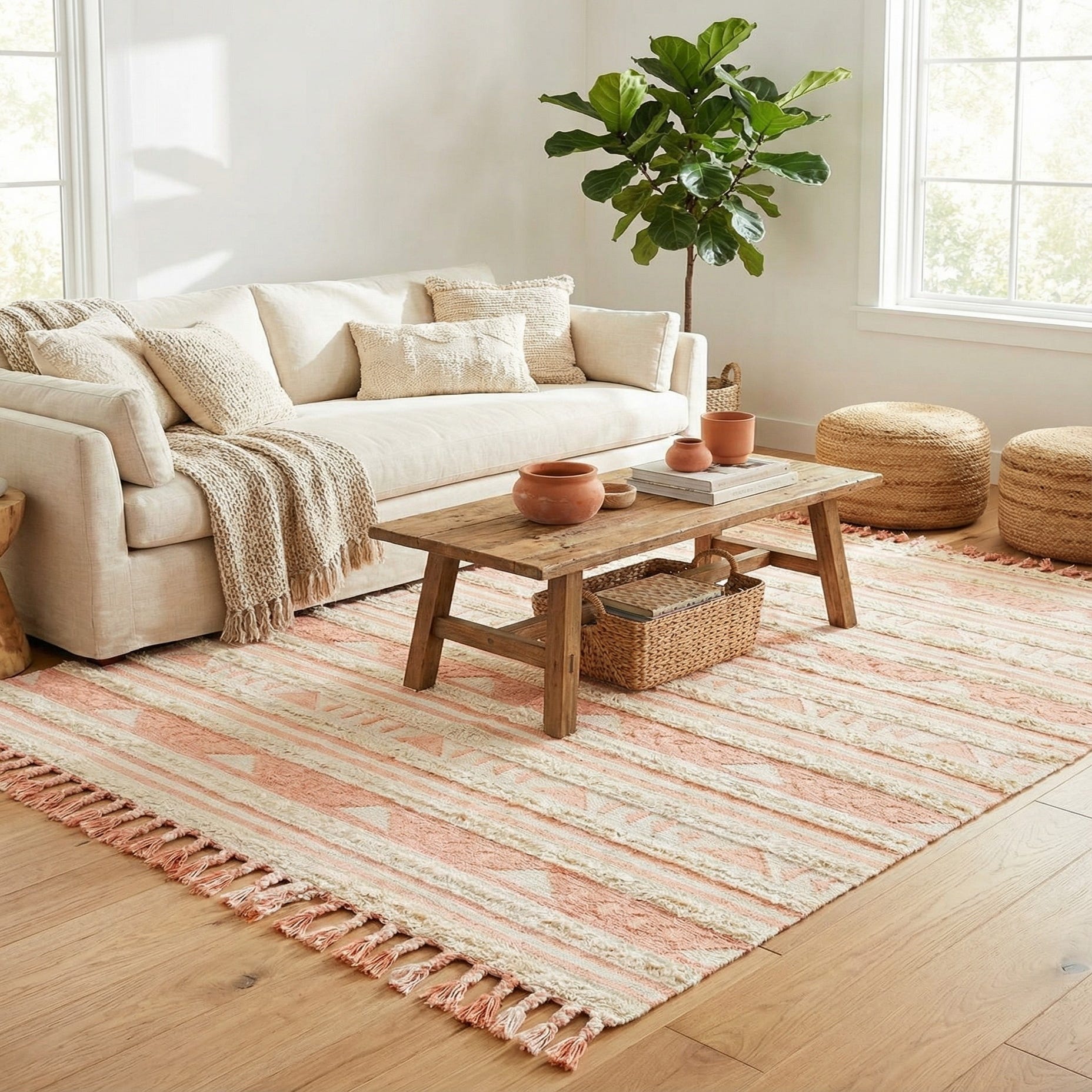 Primary color is Baby Pink. Colors in this rug include: Baby Pink, Cream.