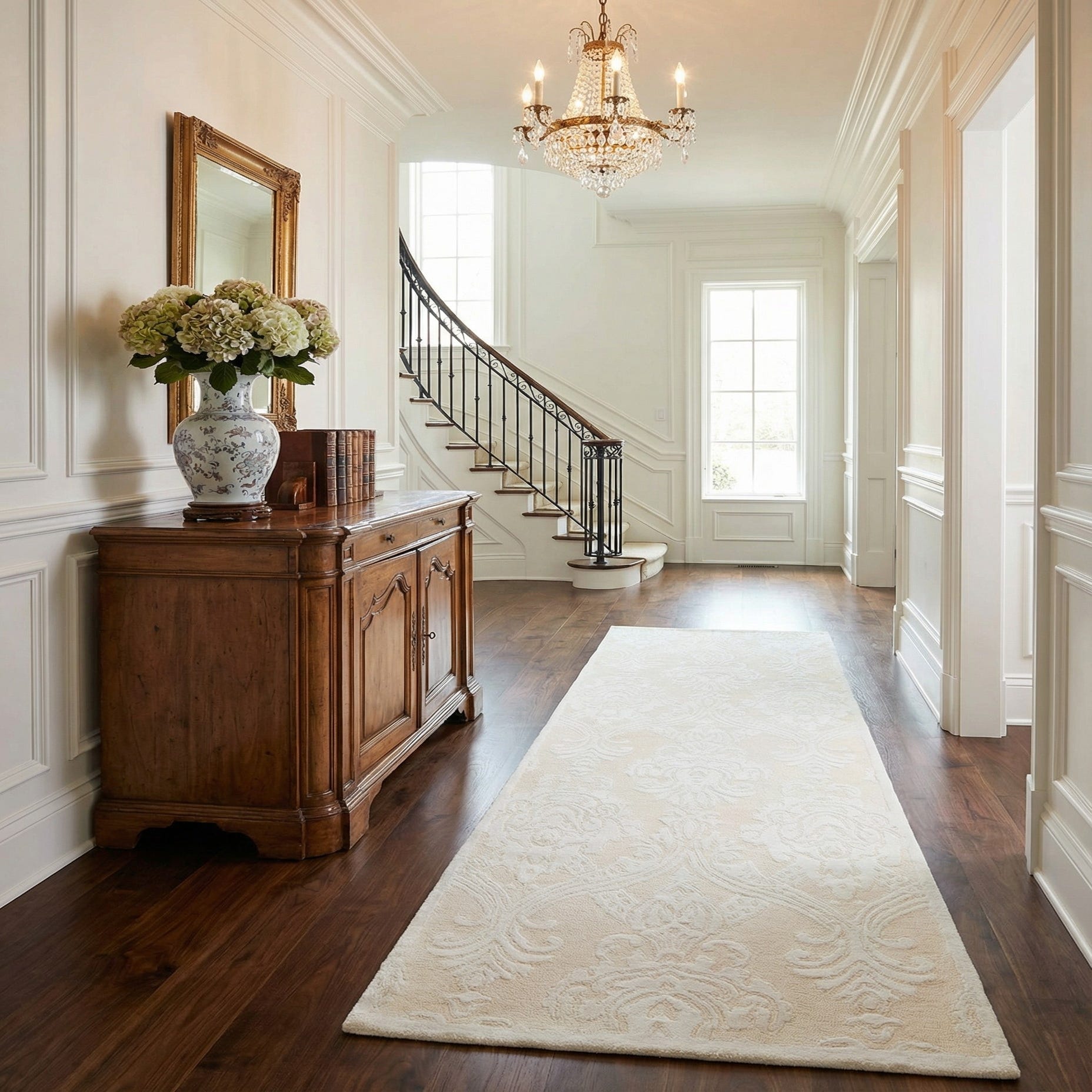 Primary color is Beige. Colors in this rug include: Beige, Ivory.