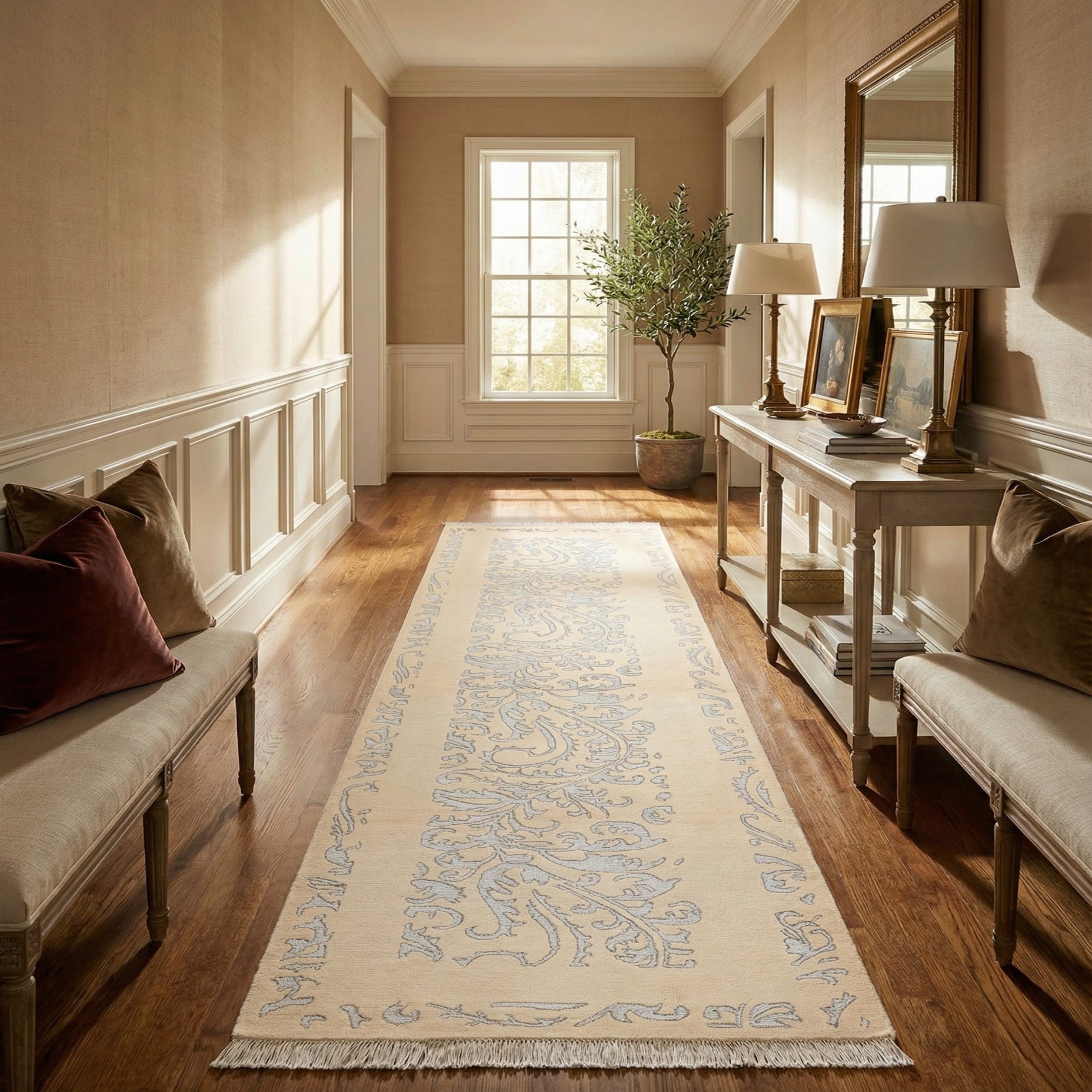 Primary color is Beige. Colors in this rug include: Beige, Silver.