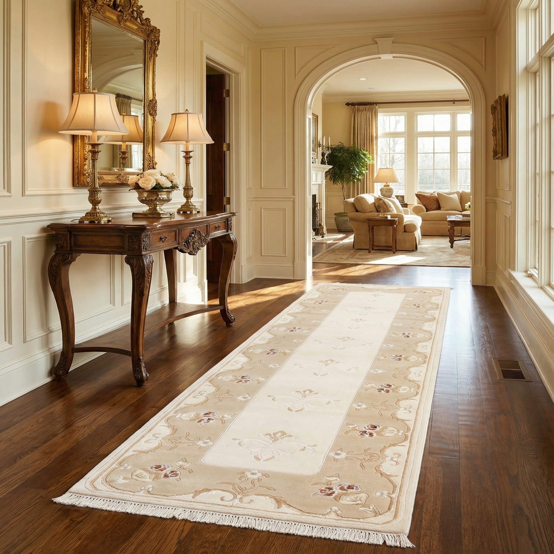 Primary color is Beige. Colors in this rug include: Beige, Brown, Ivory, Light Brown, Tan, Silver.