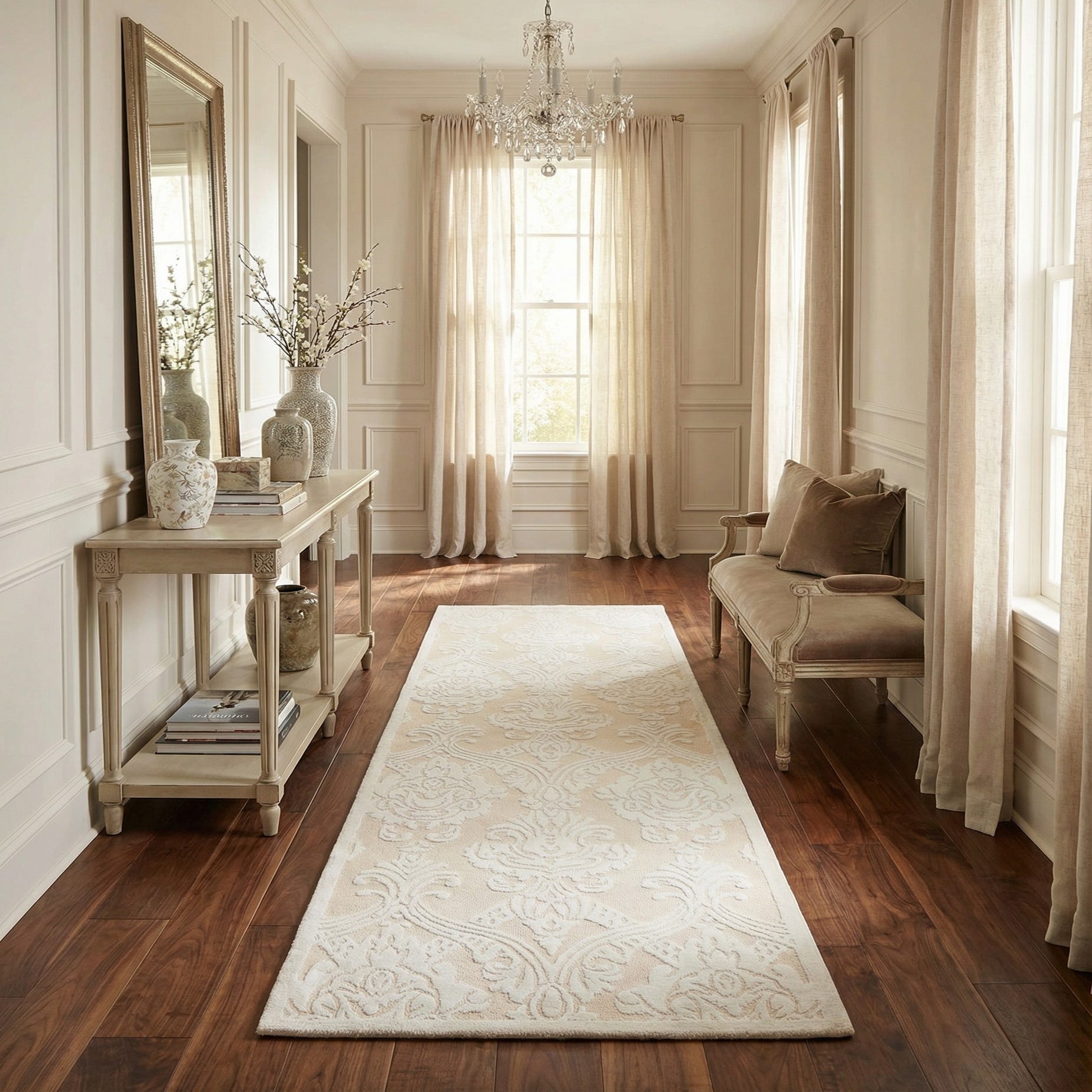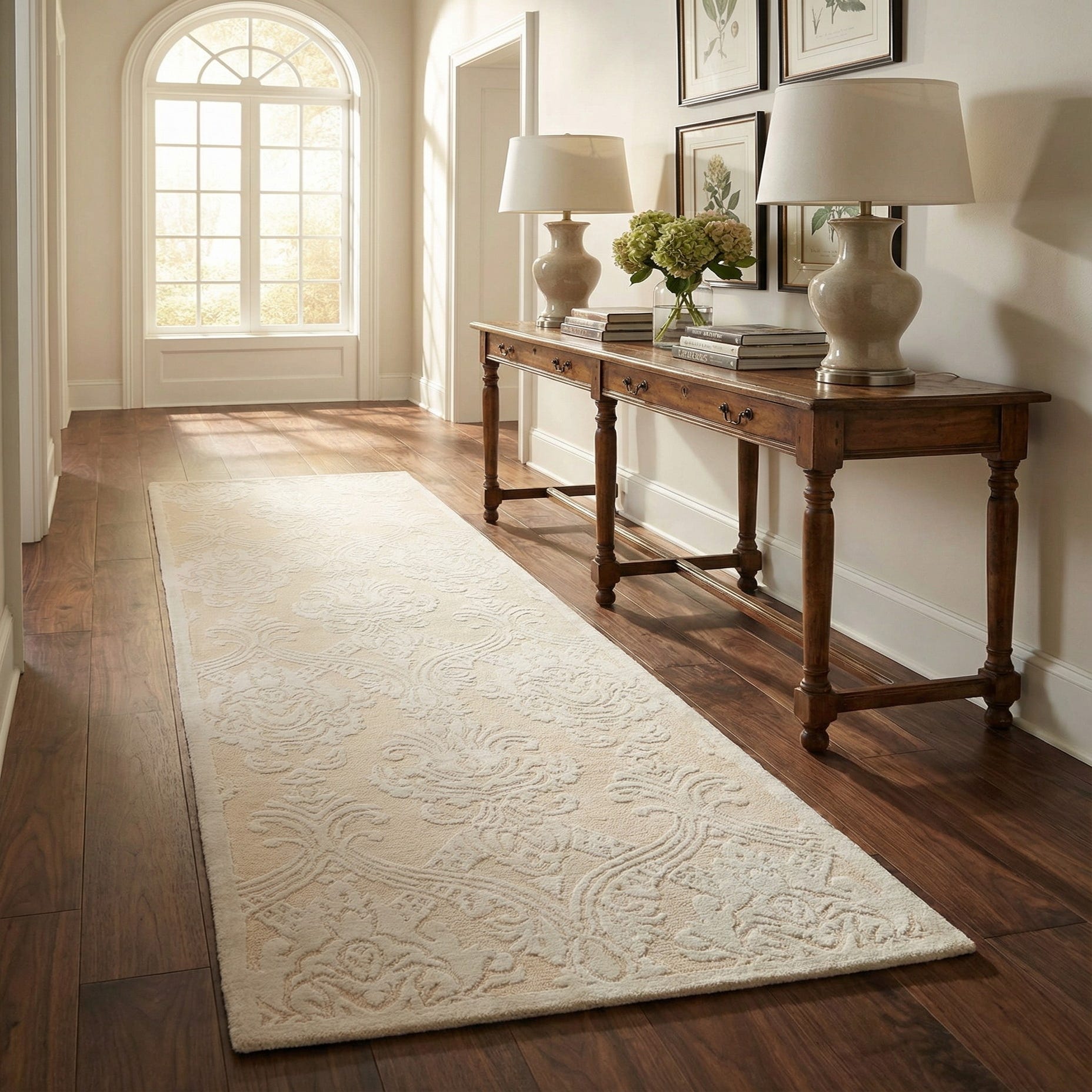 Primary color is Beige. Colors in this rug include: Beige, Ivory.