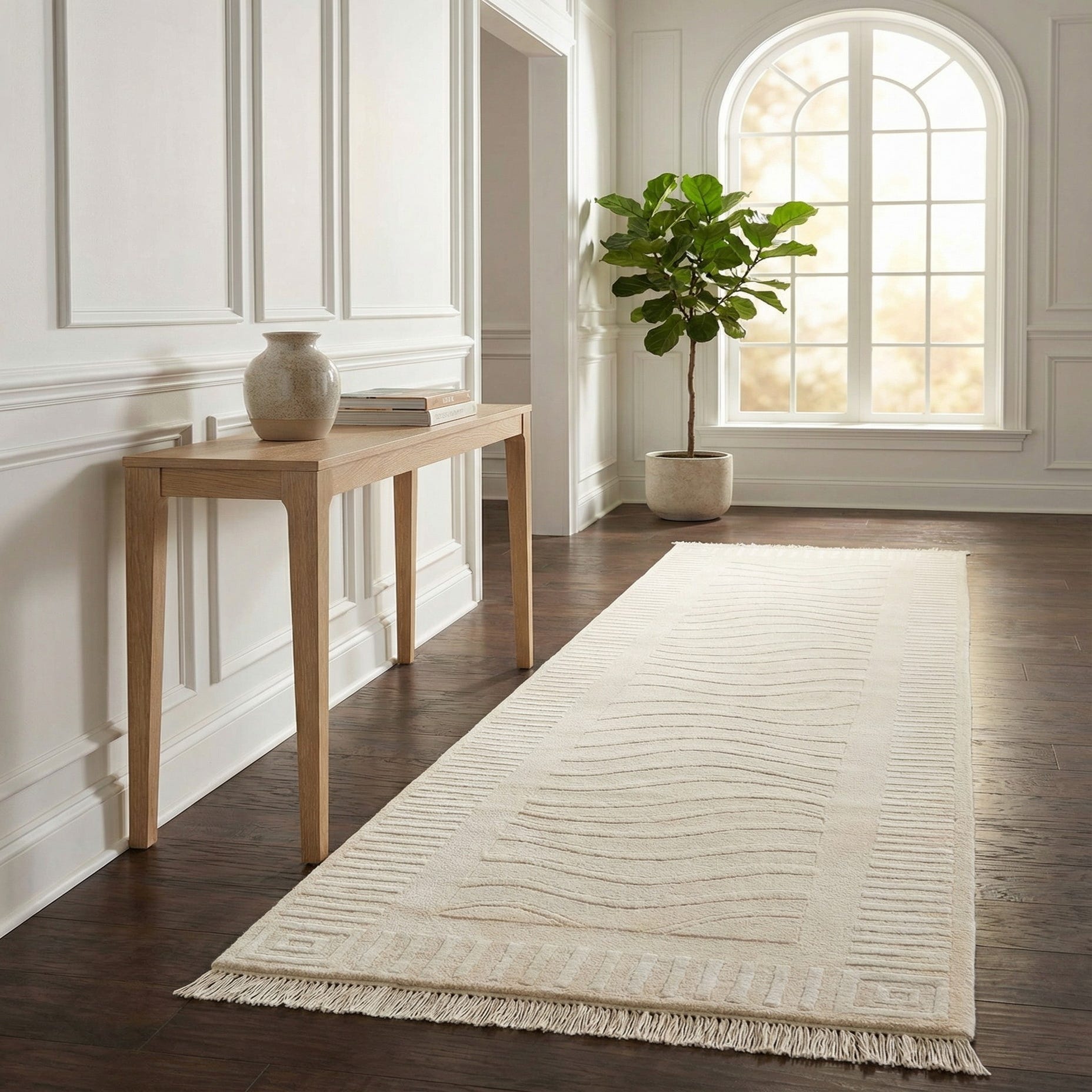 Primary color is Beige. Colors in this rug include: Beige, Ivory.