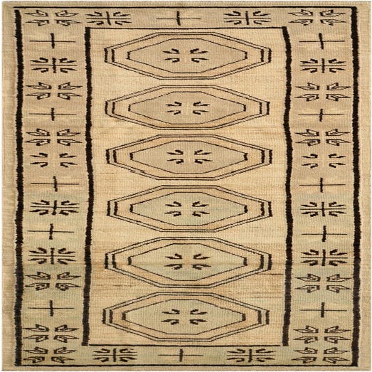 Primary color is Beige. Colors in this rug include: Beige, Brown, Light Green, Ivory.