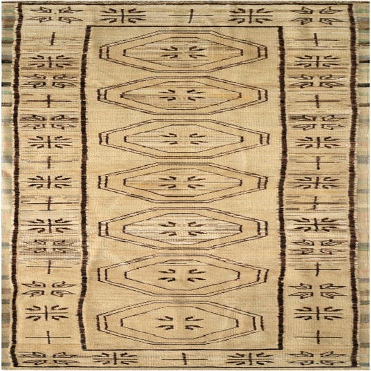 Primary color is Beige. Colors in this rug include: Beige, Brown, Ivory.