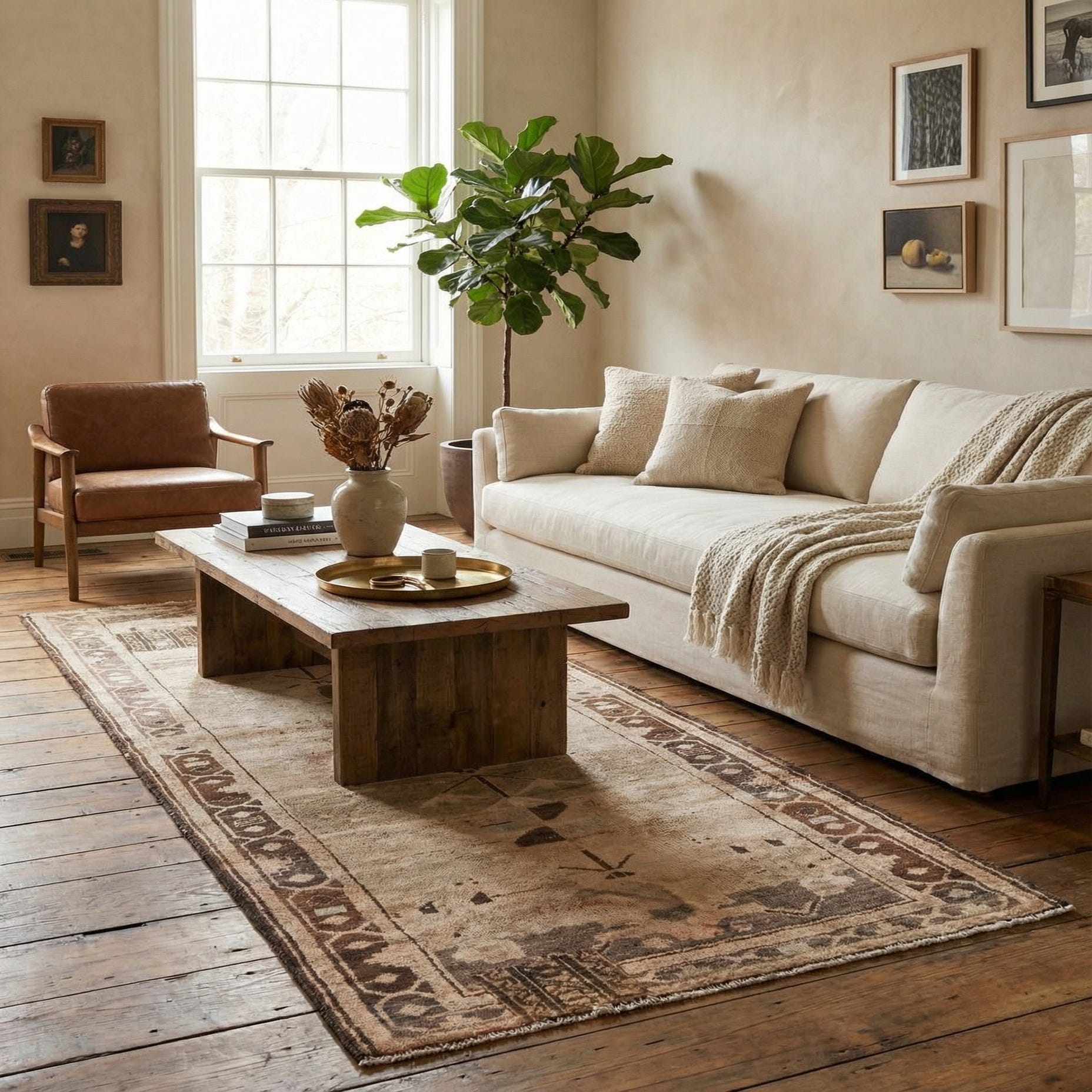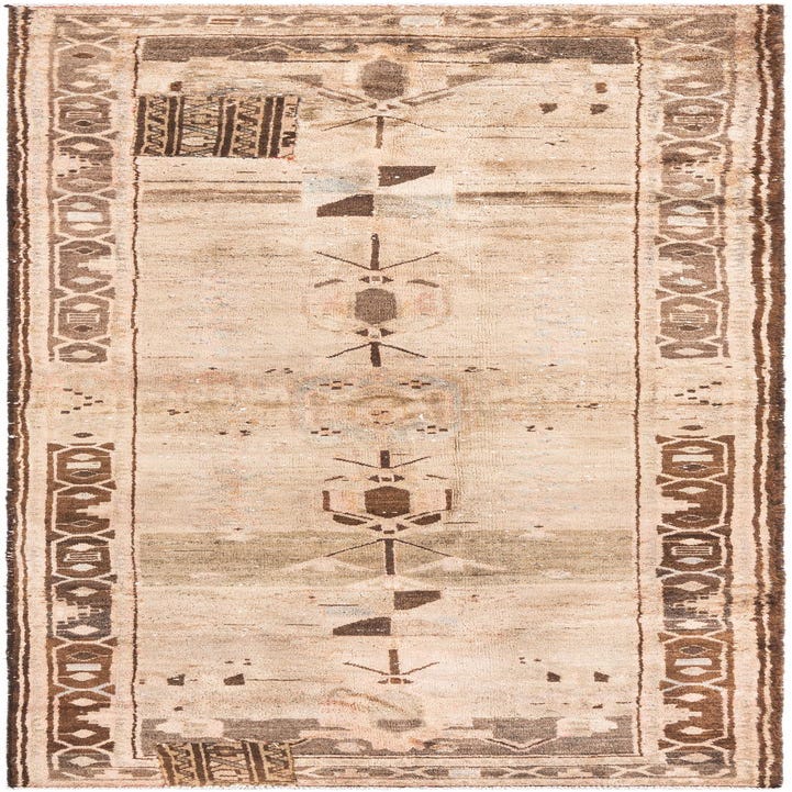Primary color is Beige. Colors in this rug include: Beige, Brown, Ivory.
