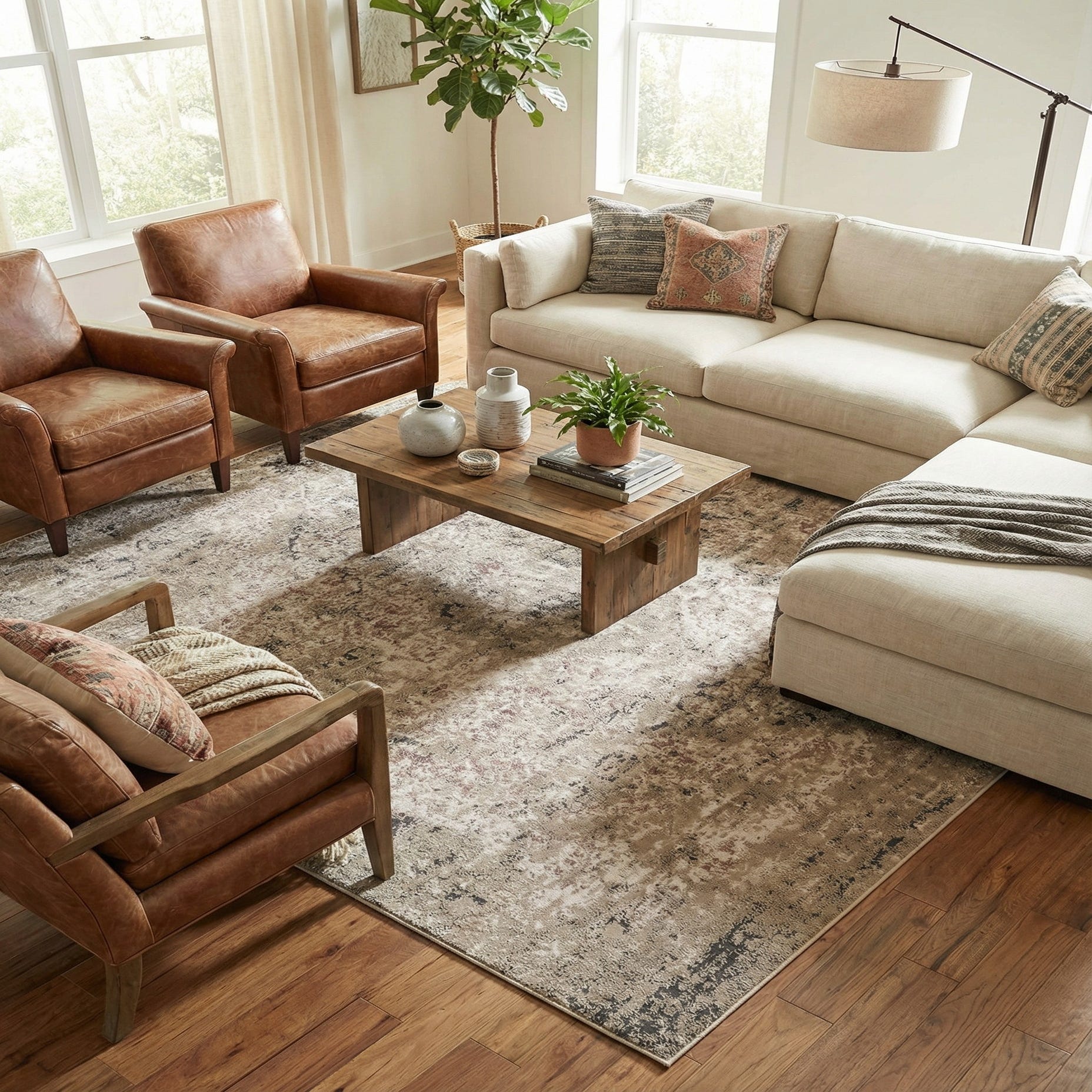 Primary color is Beige. Colors in this rug include: Beige, Gray, Ivory, Light Brown.
