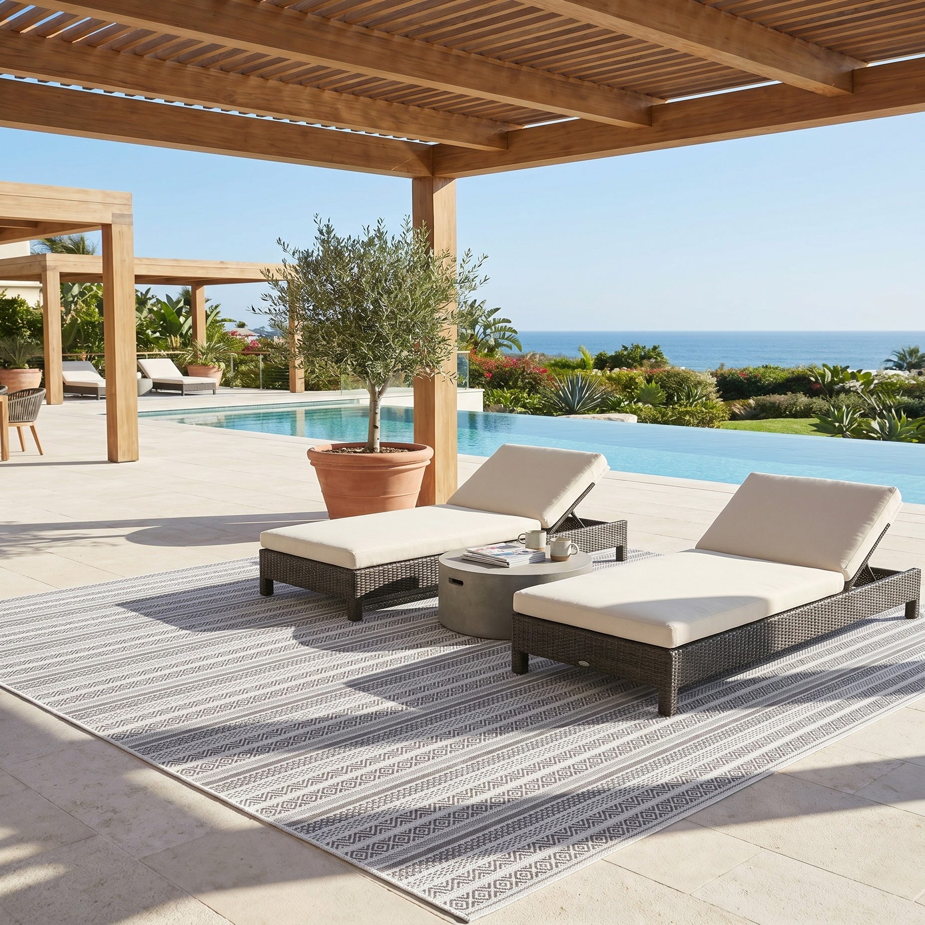 10' x 10' Easy-Clean Striped Indoor / Outdoor Square Rug