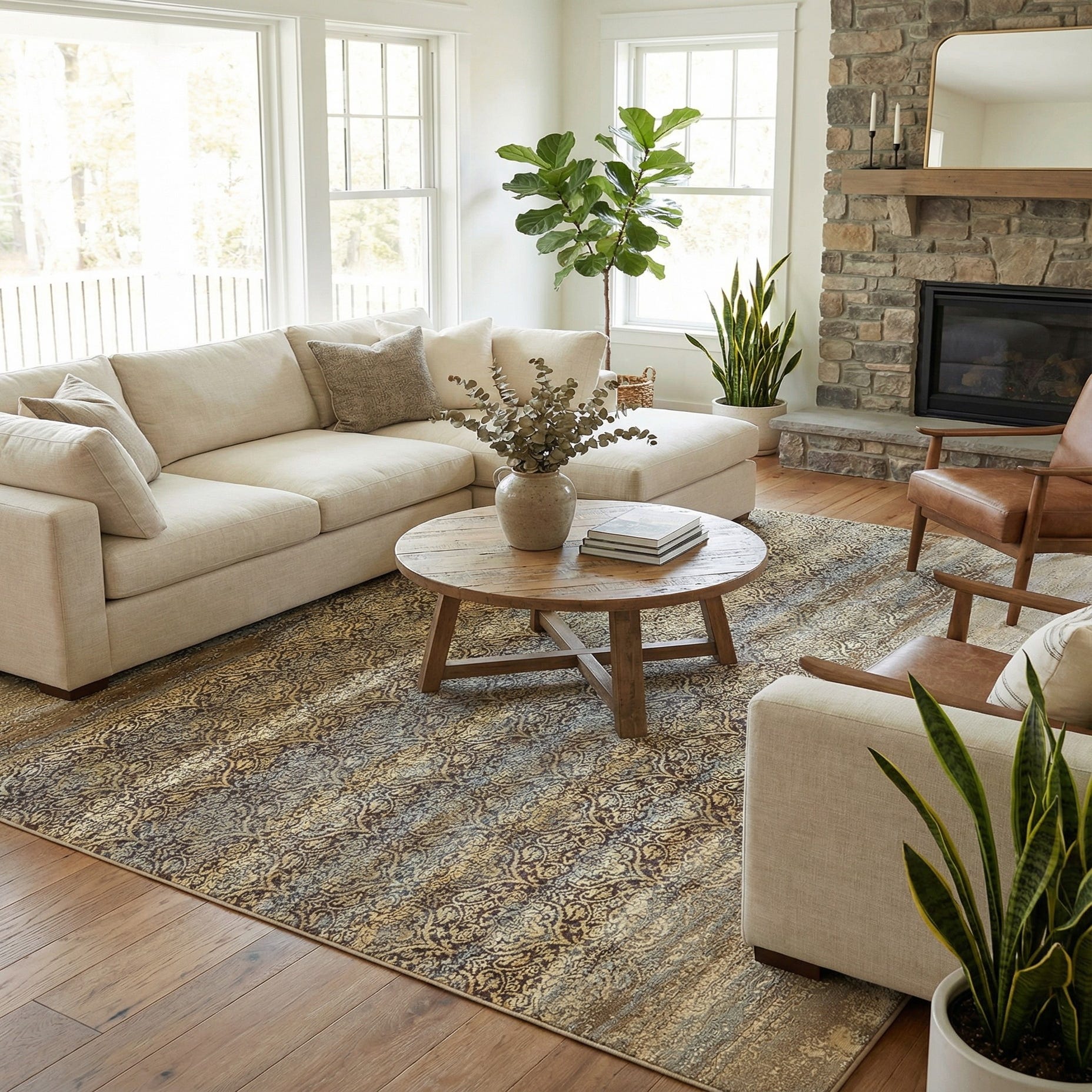 Primary image 10' x 12' 2  Washable Botanical Indoor / Outdoor Rug