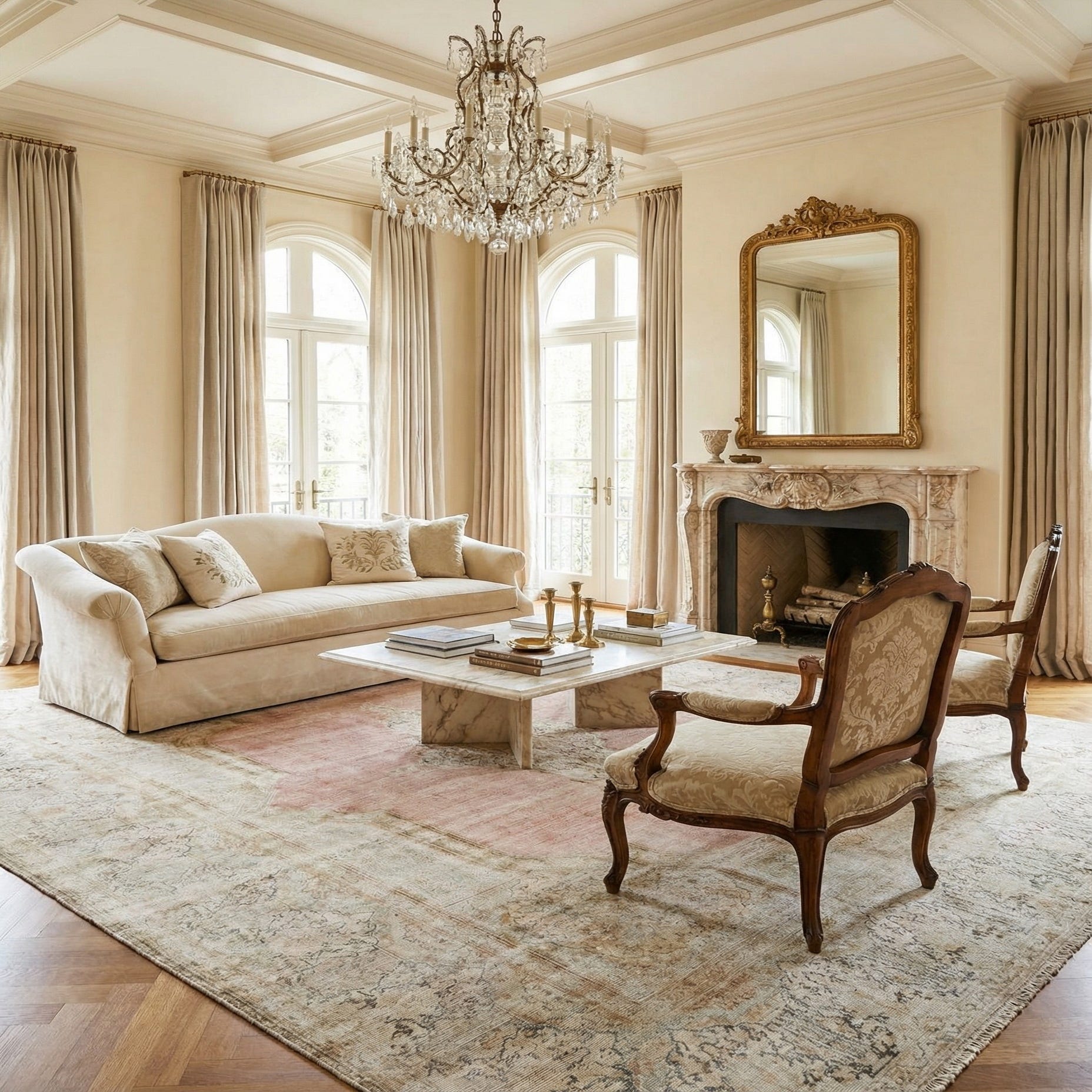 Primary color is Beige. Colors in this rug include: Beige, Beige, Red, Cream, Light Brown, Grey.