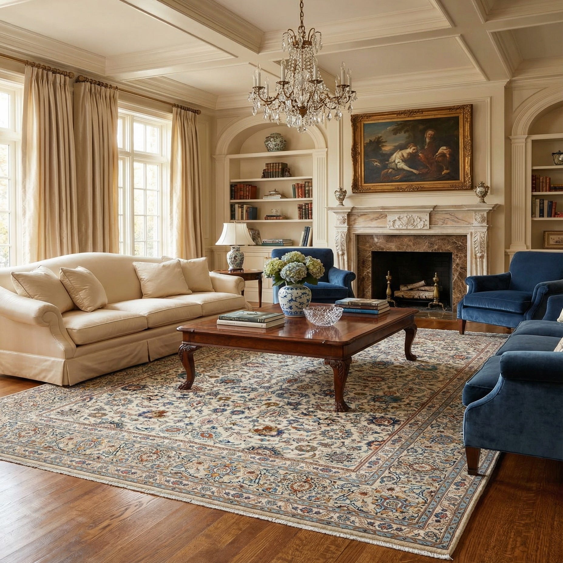 Primary color is Beige. Colors in this rug include: Beige, Cream, Grey, Blue, Red, Green.