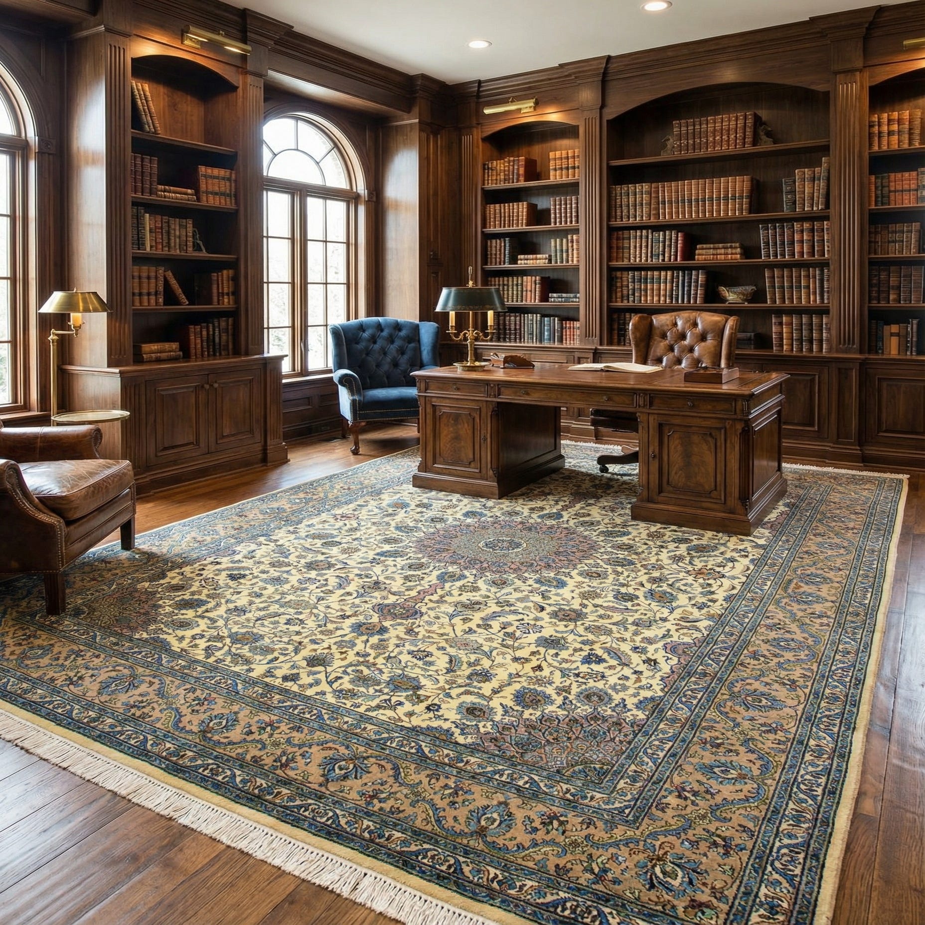 Primary image 9' 9 x 13' 3  Hand Knotted Kashan Persian Wool Rug