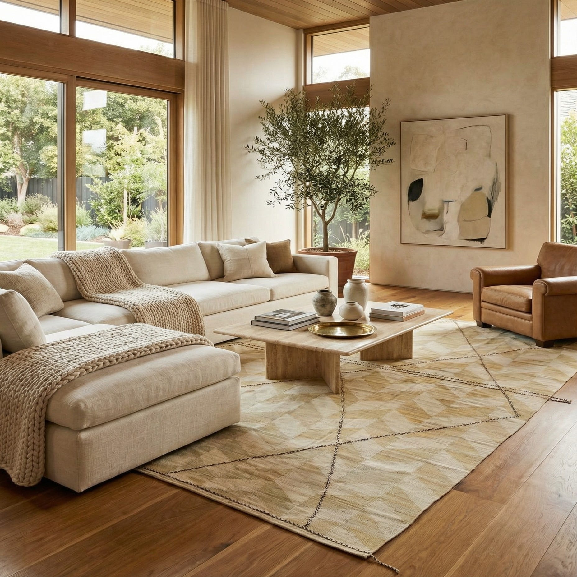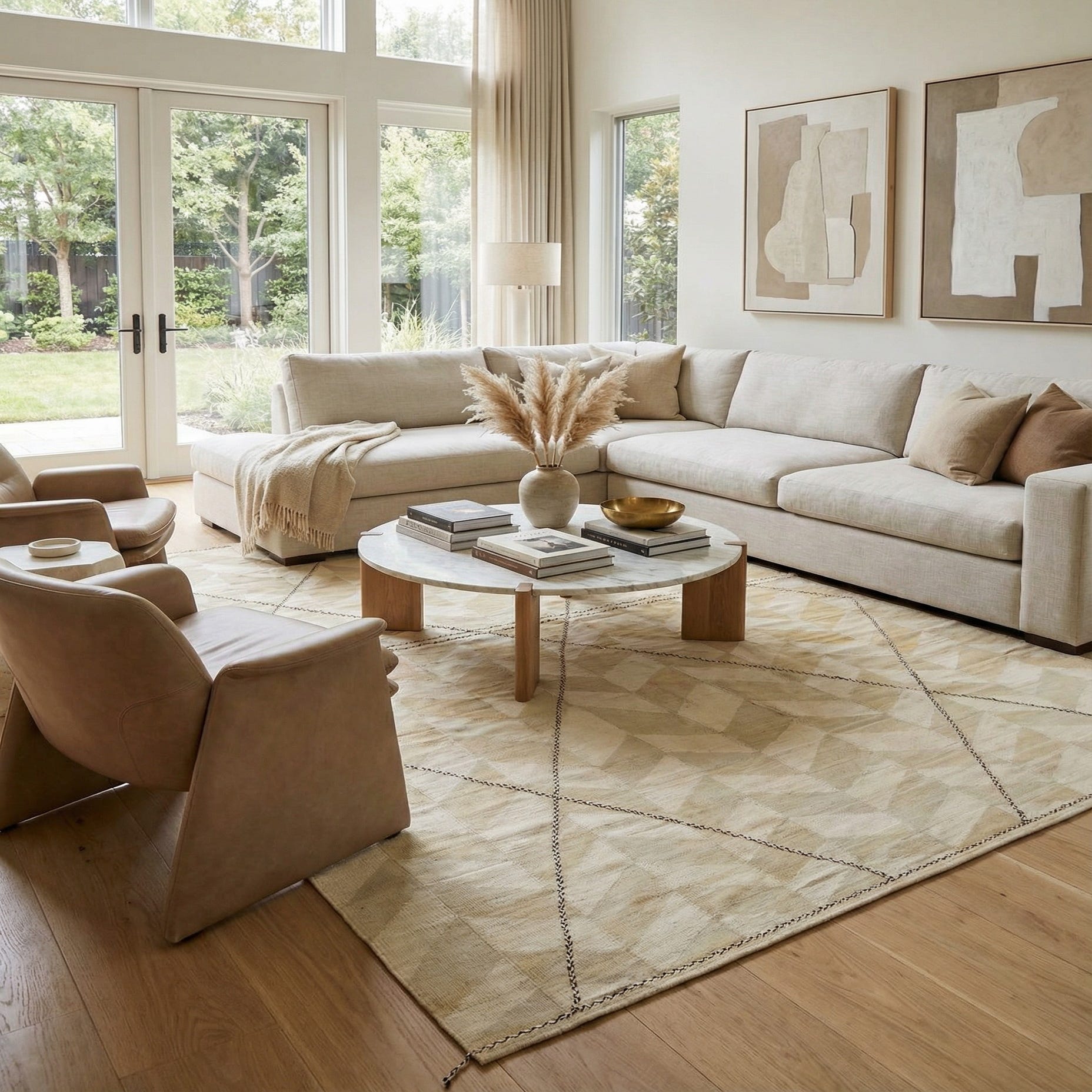 Primary color is Beige. Colors in this rug include: Beige, Light Green.