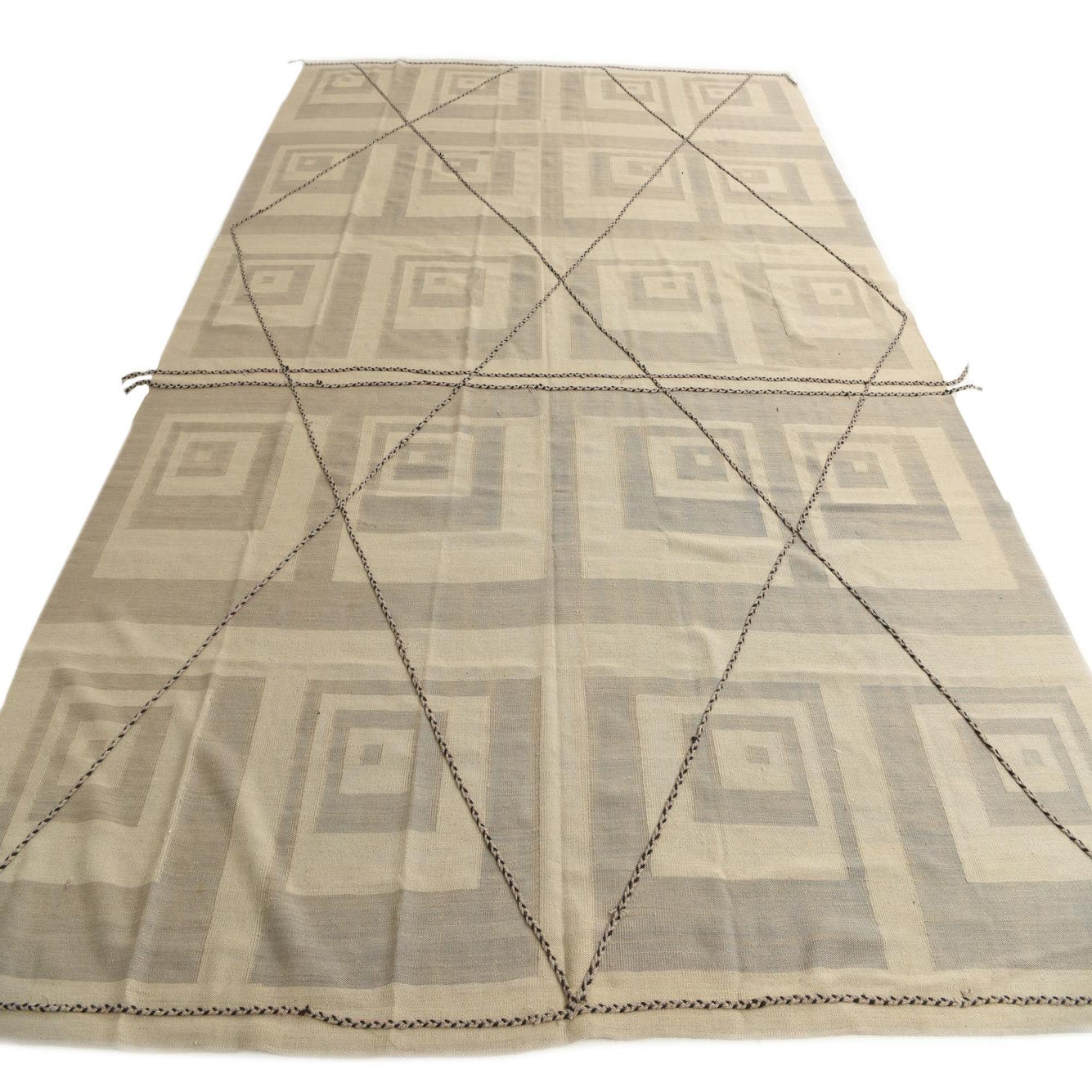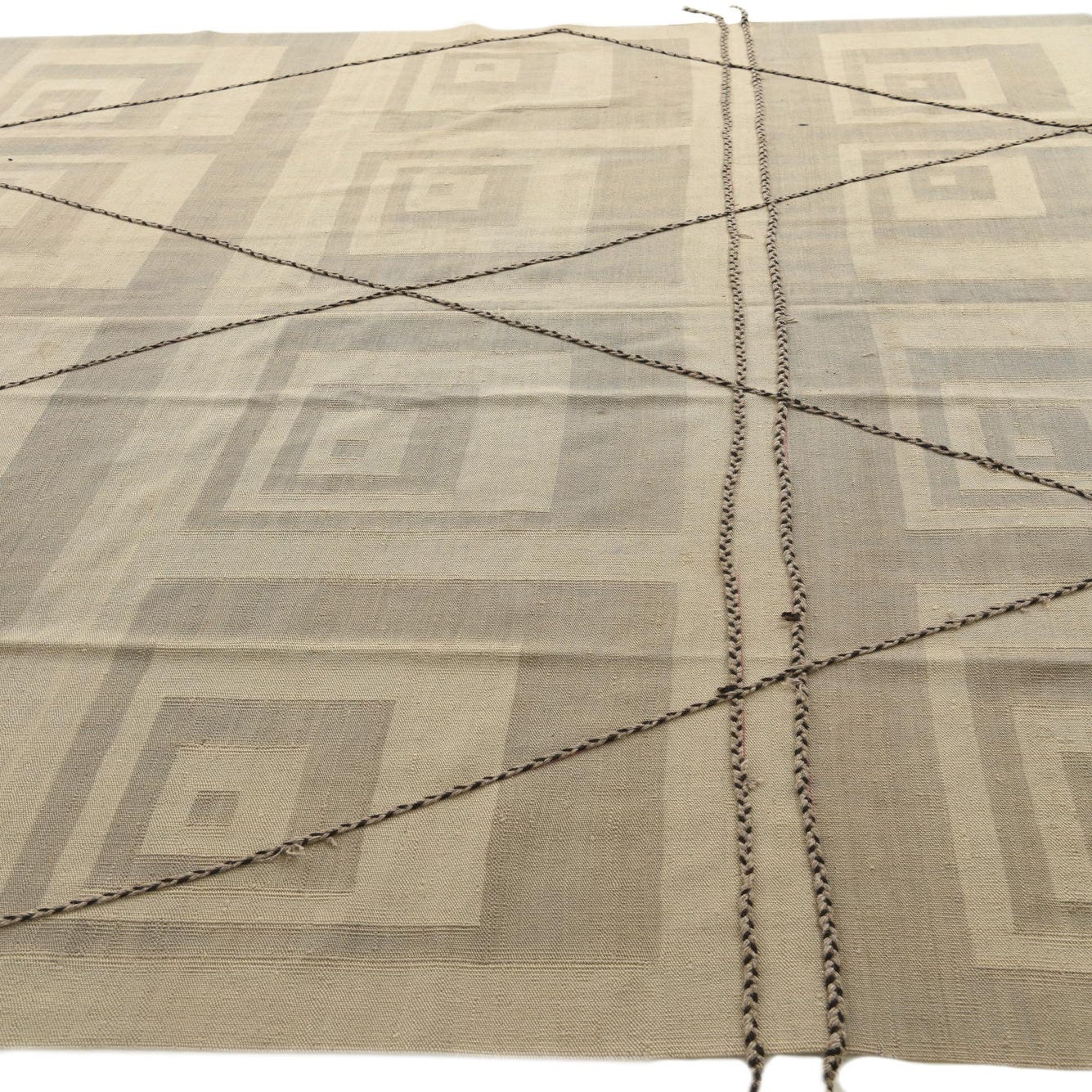 Primary color is Beige. Colors in this rug include: Beige, Black, Gray.