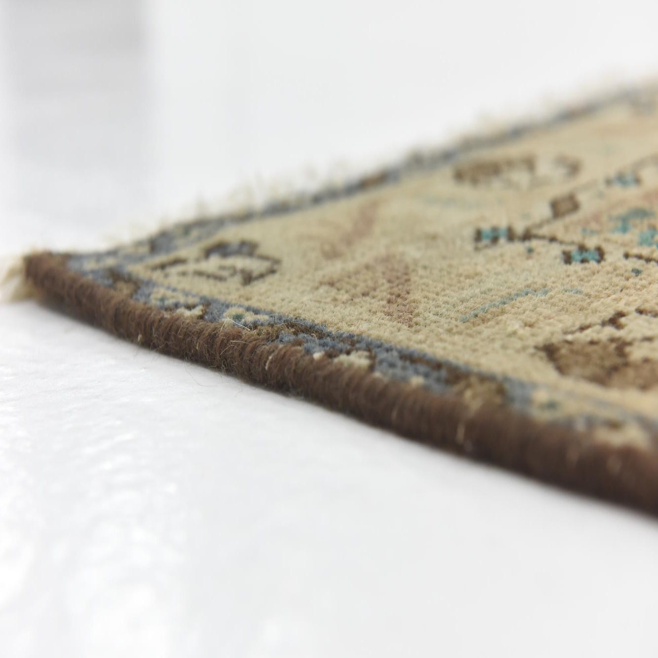 This Persian Ultra Vintage rug is an antique Persian Rug that has been washed, over-dyed, and then shaved down to a low pile. Look at the detail pictures to fully appreciate the uniqueness of this piece.