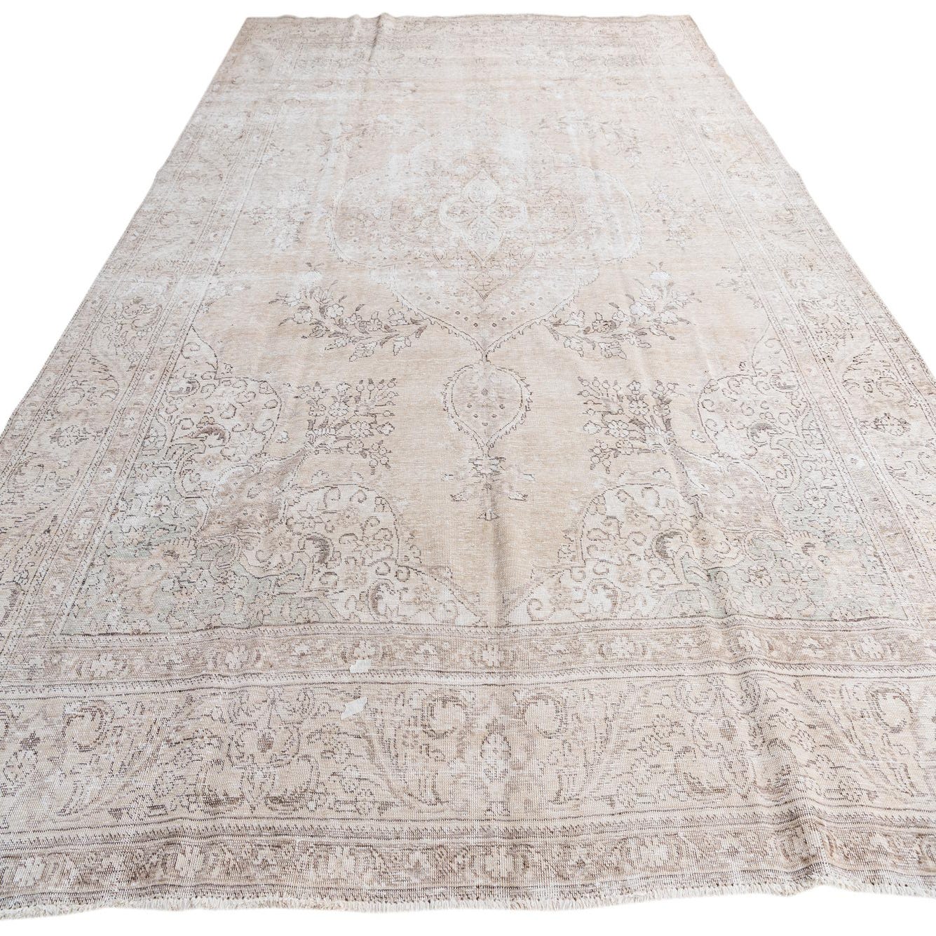 This Persian Ultra Vintage rug is an antique Persian Rug that has been washed, over-dyed, and then shaved down to a low pile. Look at the detail pictures to fully appreciate the uniqueness of this piece.