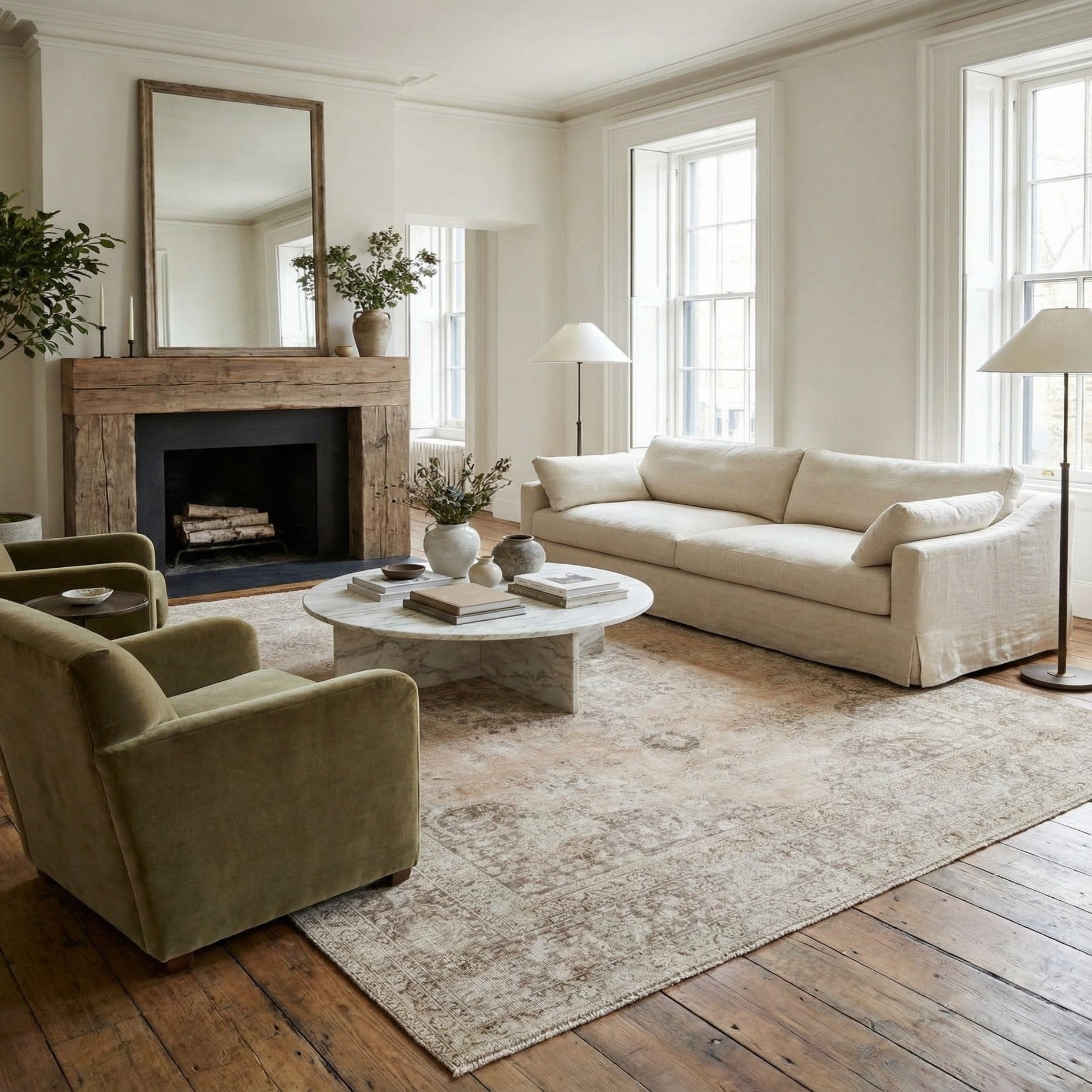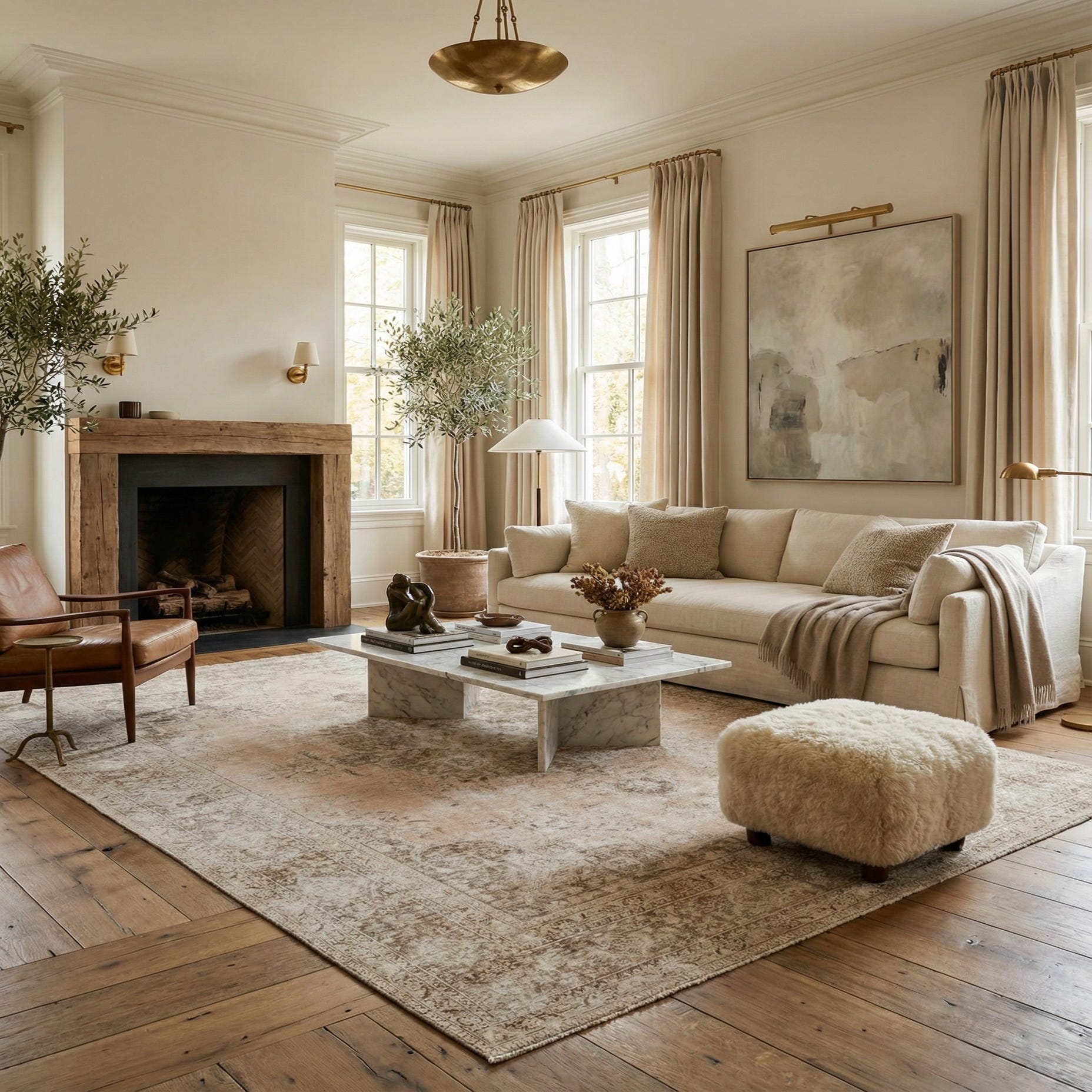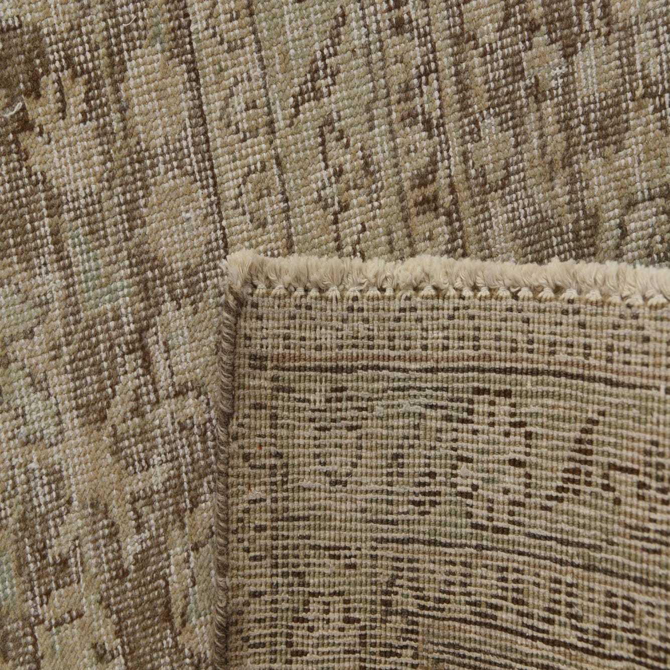 Primary color is Beige. Colors in this rug include: Beige, Brown, Ivory, Light Green.