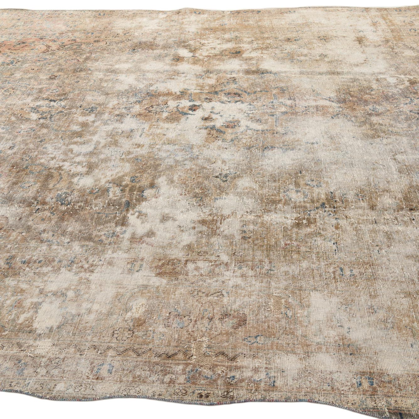 This Persian Ultra Vintage rug is an antique Persian Rug that has been washed, over-dyed, and then shaved down to a low pile. Look at the detail pictures to fully appreciate the uniqueness of this piece.