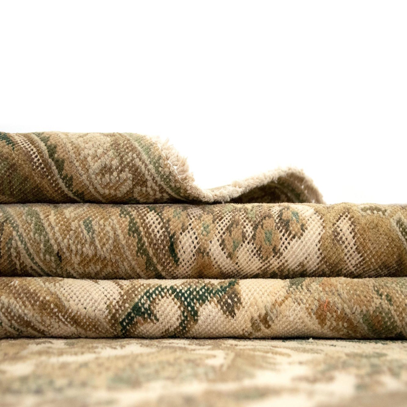 Primary color is Beige. Colors in this rug include: Beige, Brown, Green, Cream.