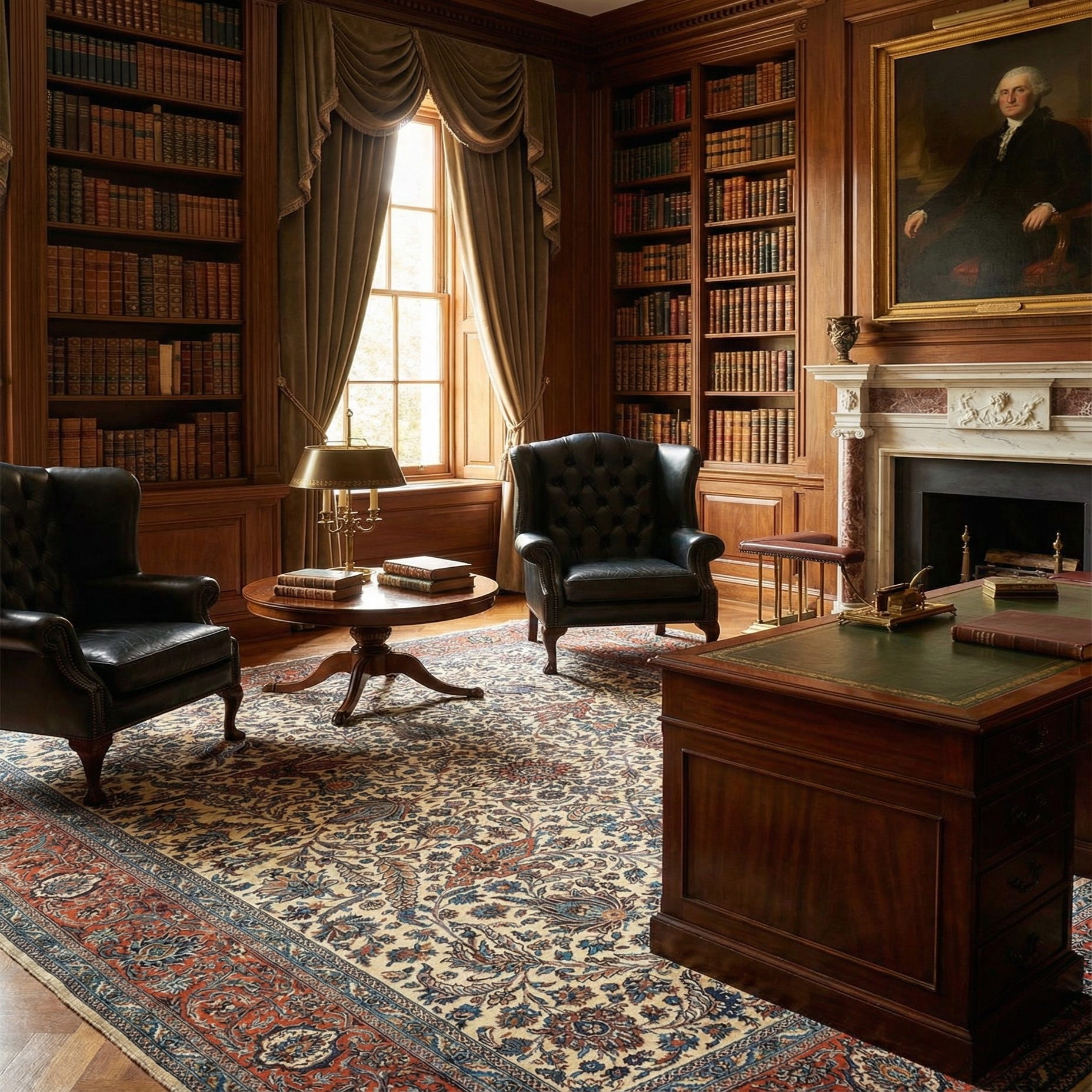 Primary color is Beige. Colors in this rug include: Beige, Beige, Orange, Light Blue, Black.