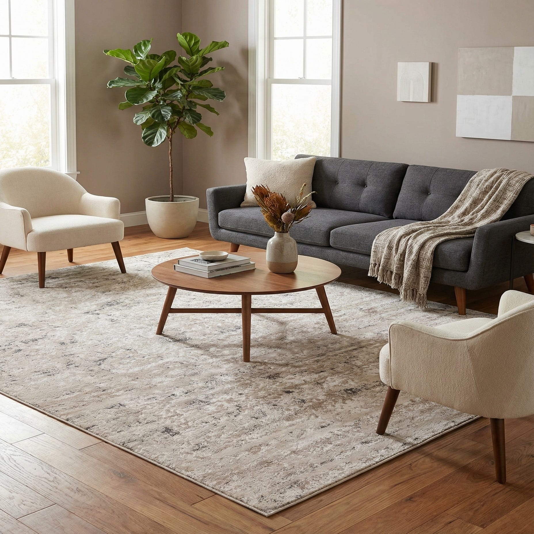 Primary color is Beige. Colors in this rug include: Beige, Gray, Ivory, Light Brown.