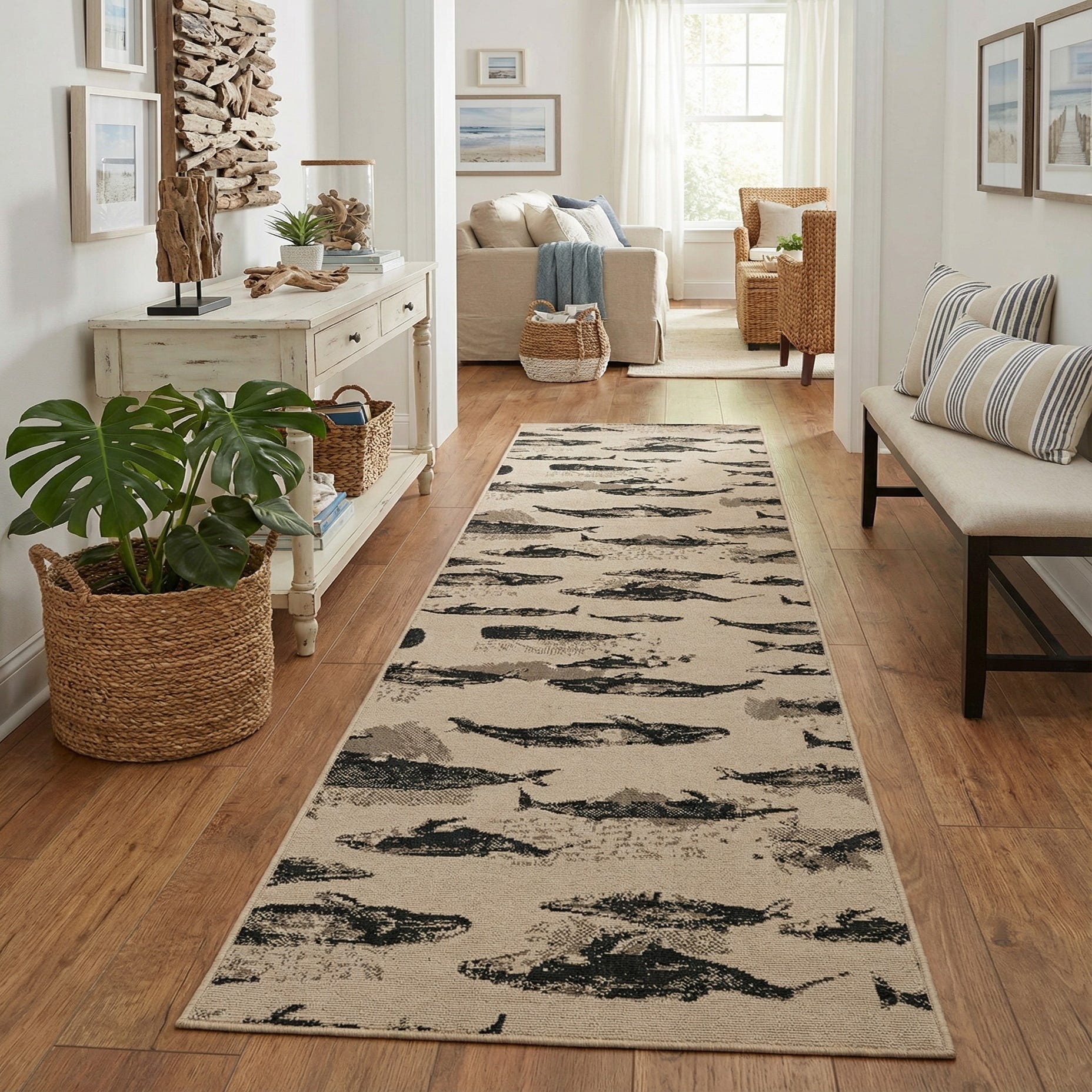 2' 7 x 12' Washable Coastal Indoor / Outdoor Runner Rug