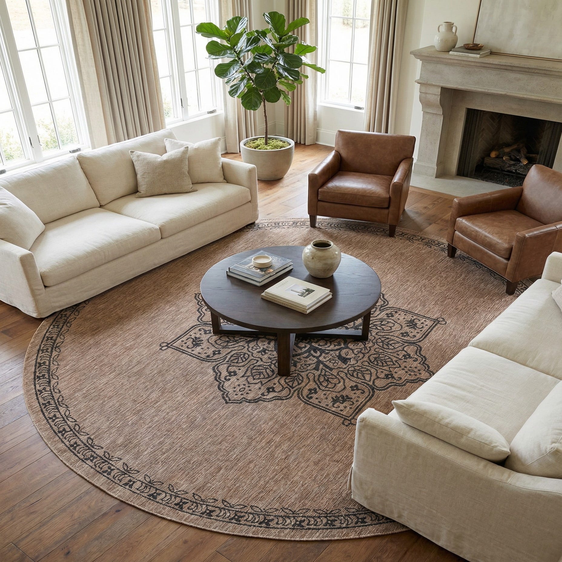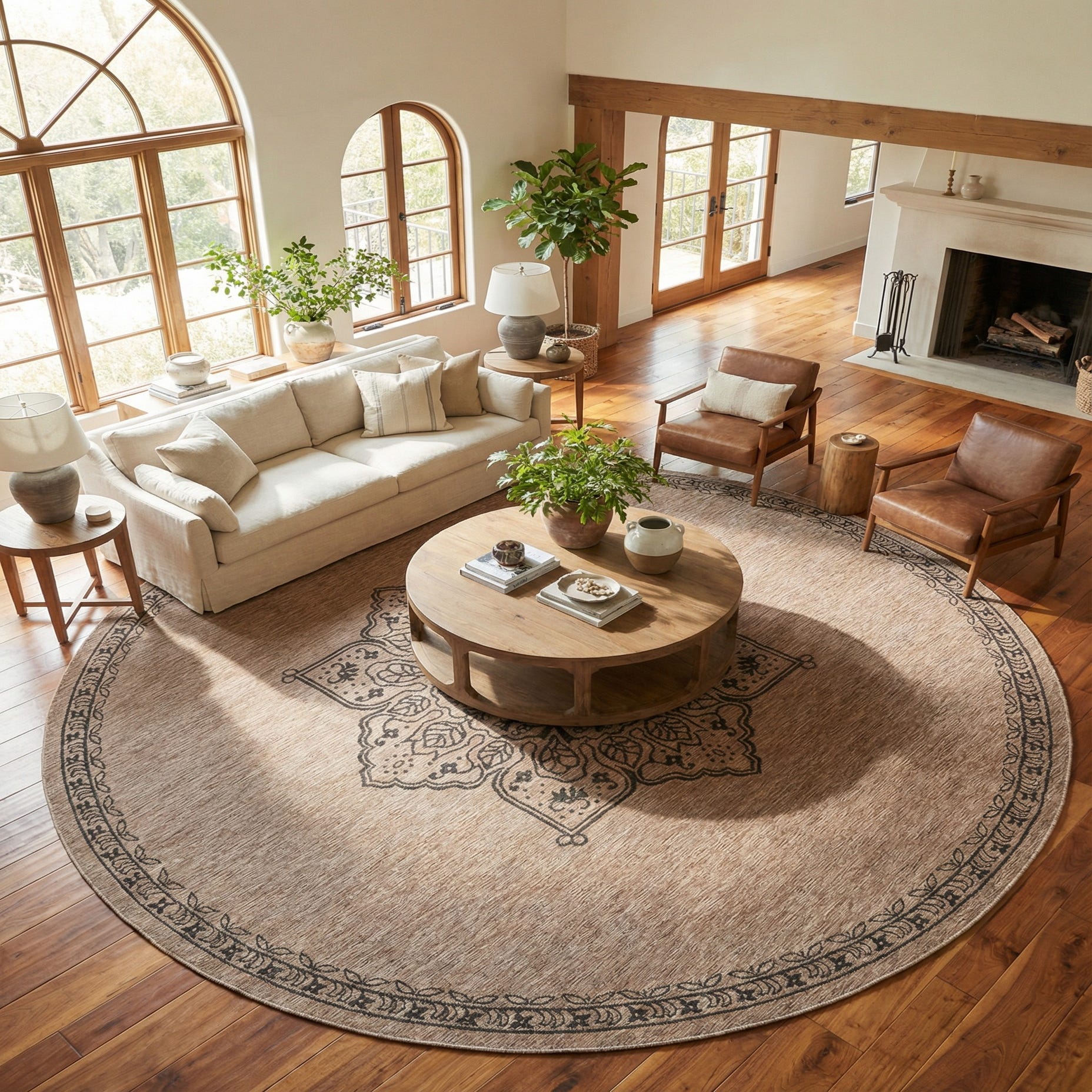 Primary image 13' x 13'  Washable Traditional Indoor / Outdoor Round Rug
