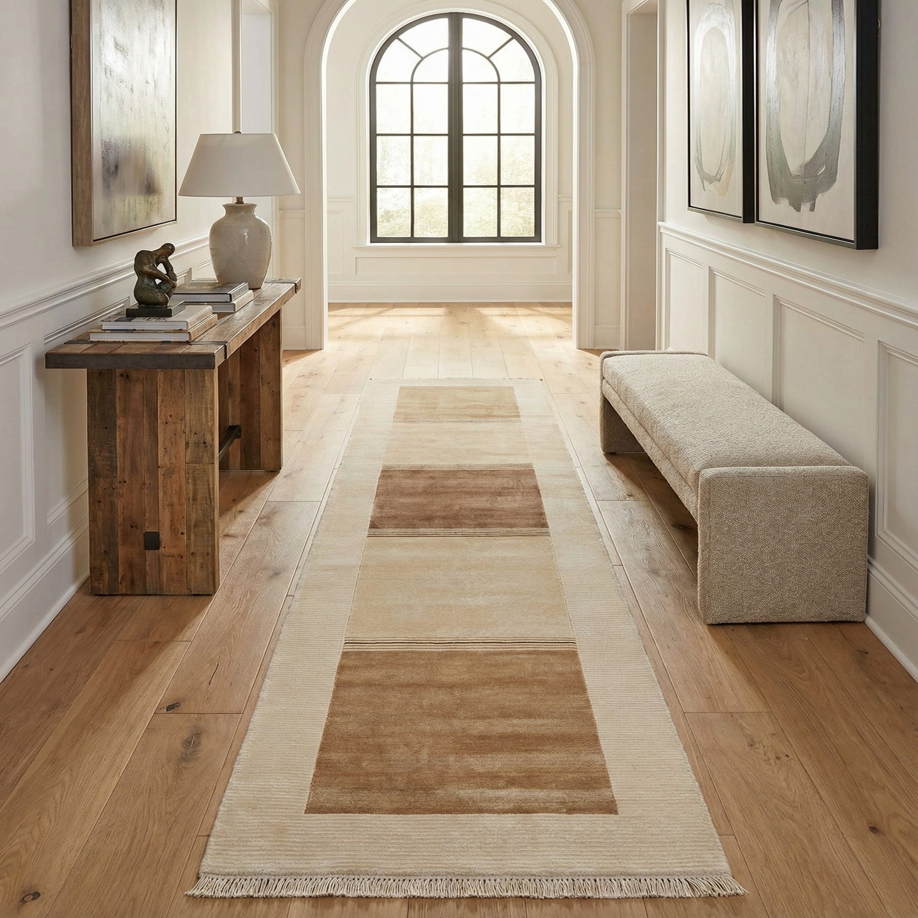Primary color is Beige. Colors in this rug include: Beige, Brown, Ivory, Tan, Cream.