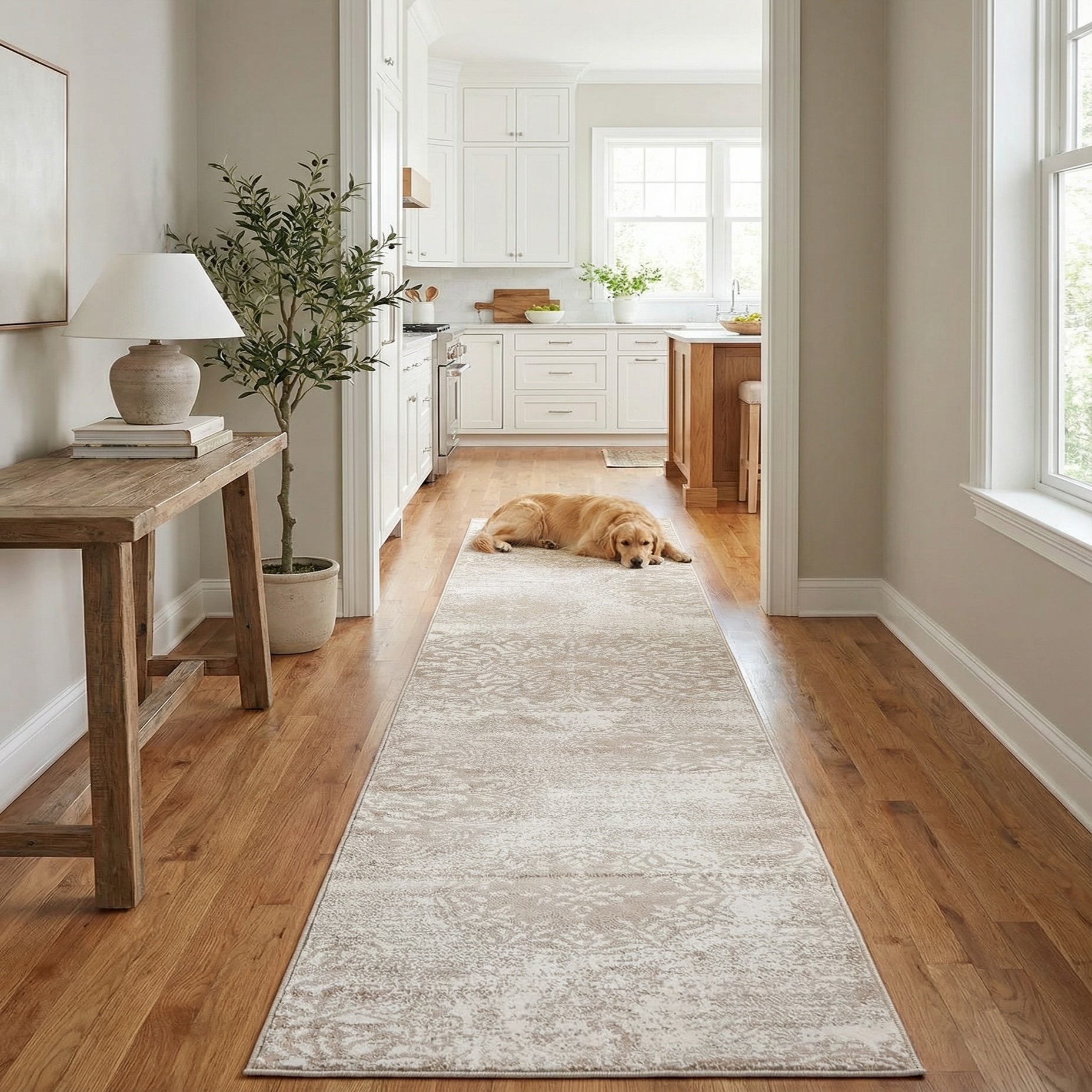 Primary color is Beige. Colors in this rug include: Beige, Ivory.