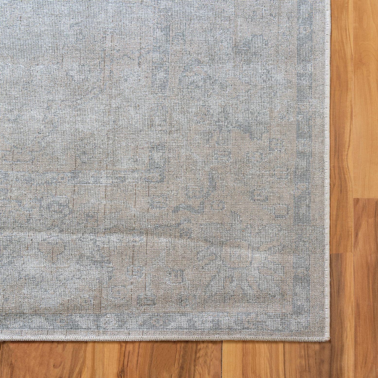 Primary color is Beige. Colors in this rug include: Beige, Blue, Brown, Gray, Ivory.