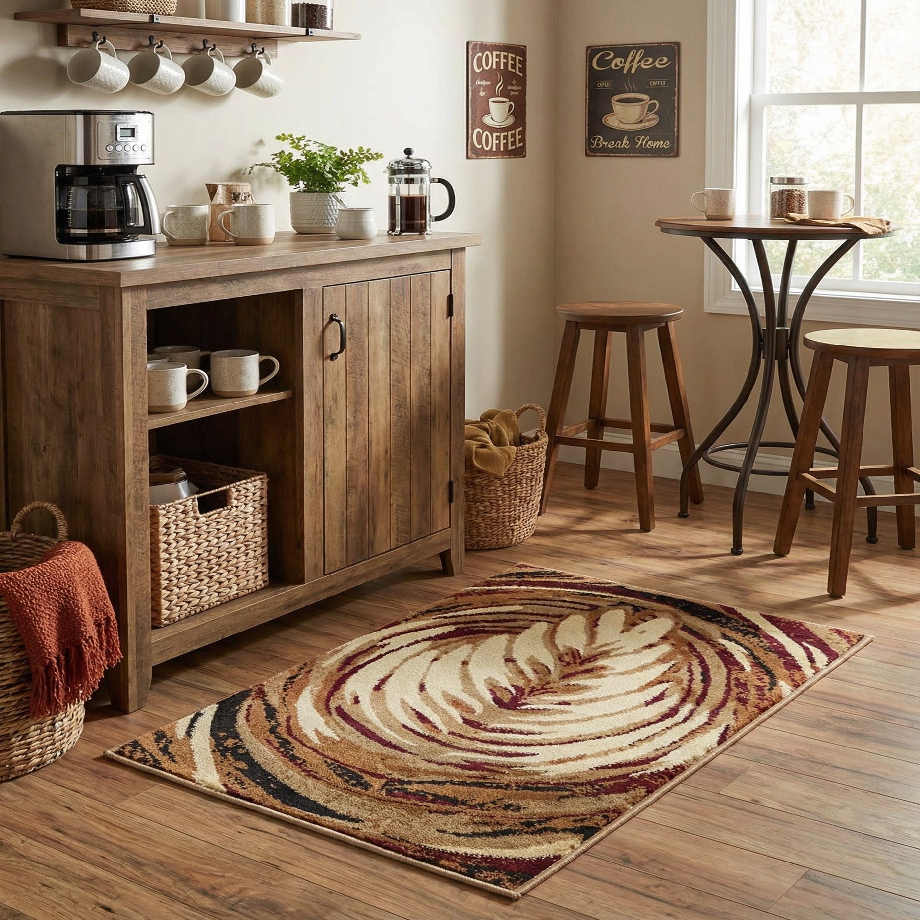 Primary color is Beige. Colors in this rug include: Beige, Brown, Cream, Light Brown, Maroon, Burgundy.