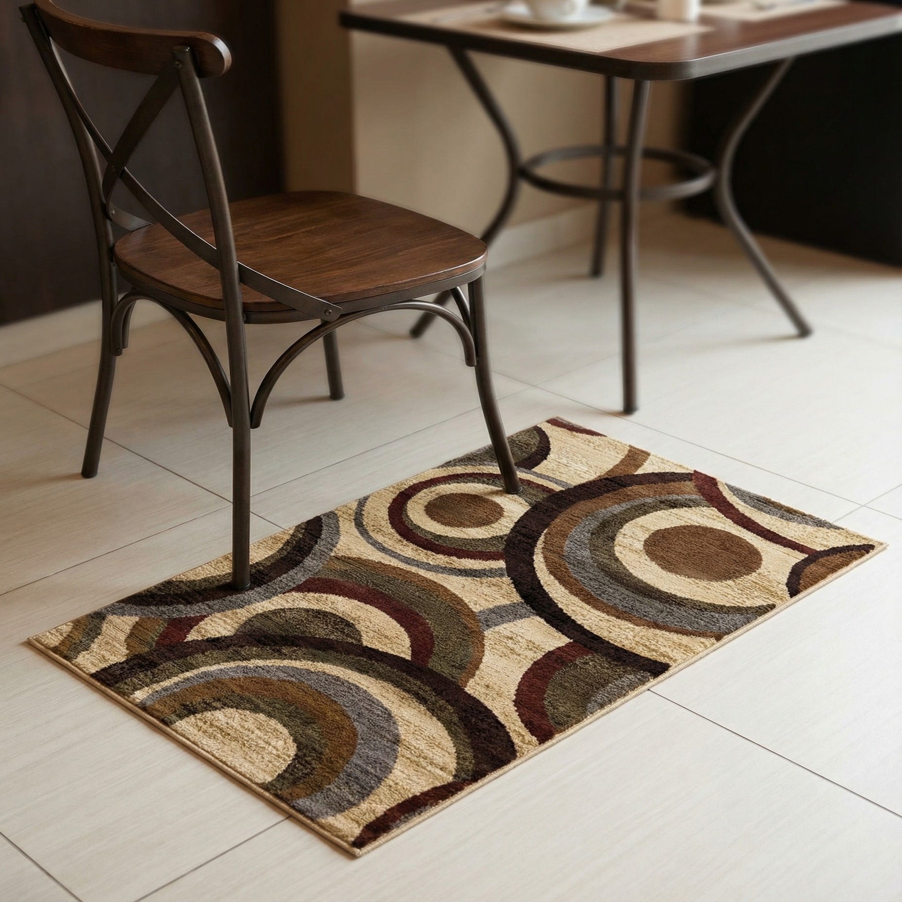 Primary color is Beige. Colors in this rug include: Beige, Black, Blue, Brown, Burgundy, Gray, Olive.