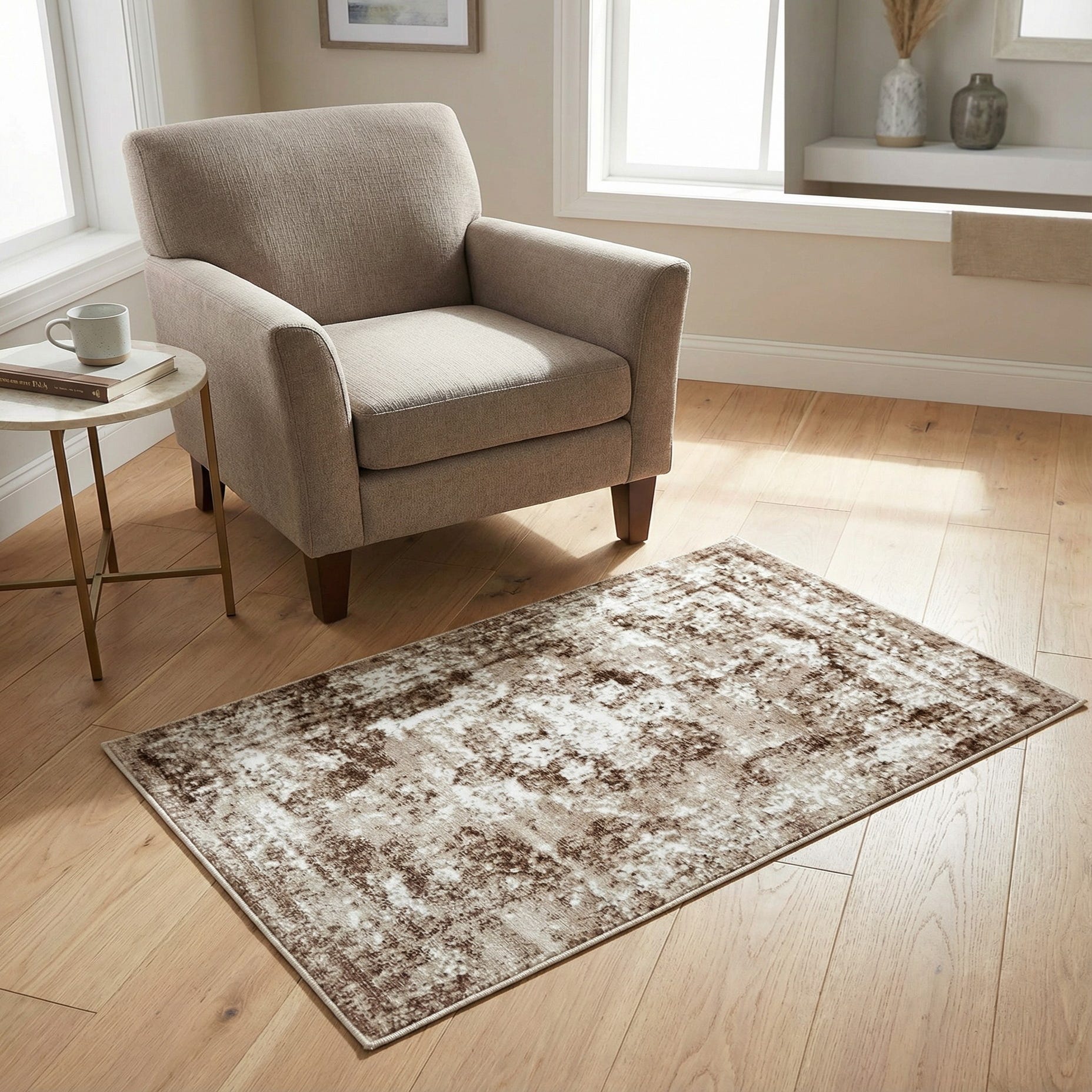 Primary color is Beige. Colors in this rug include: Beige, Brown, Ivory.
