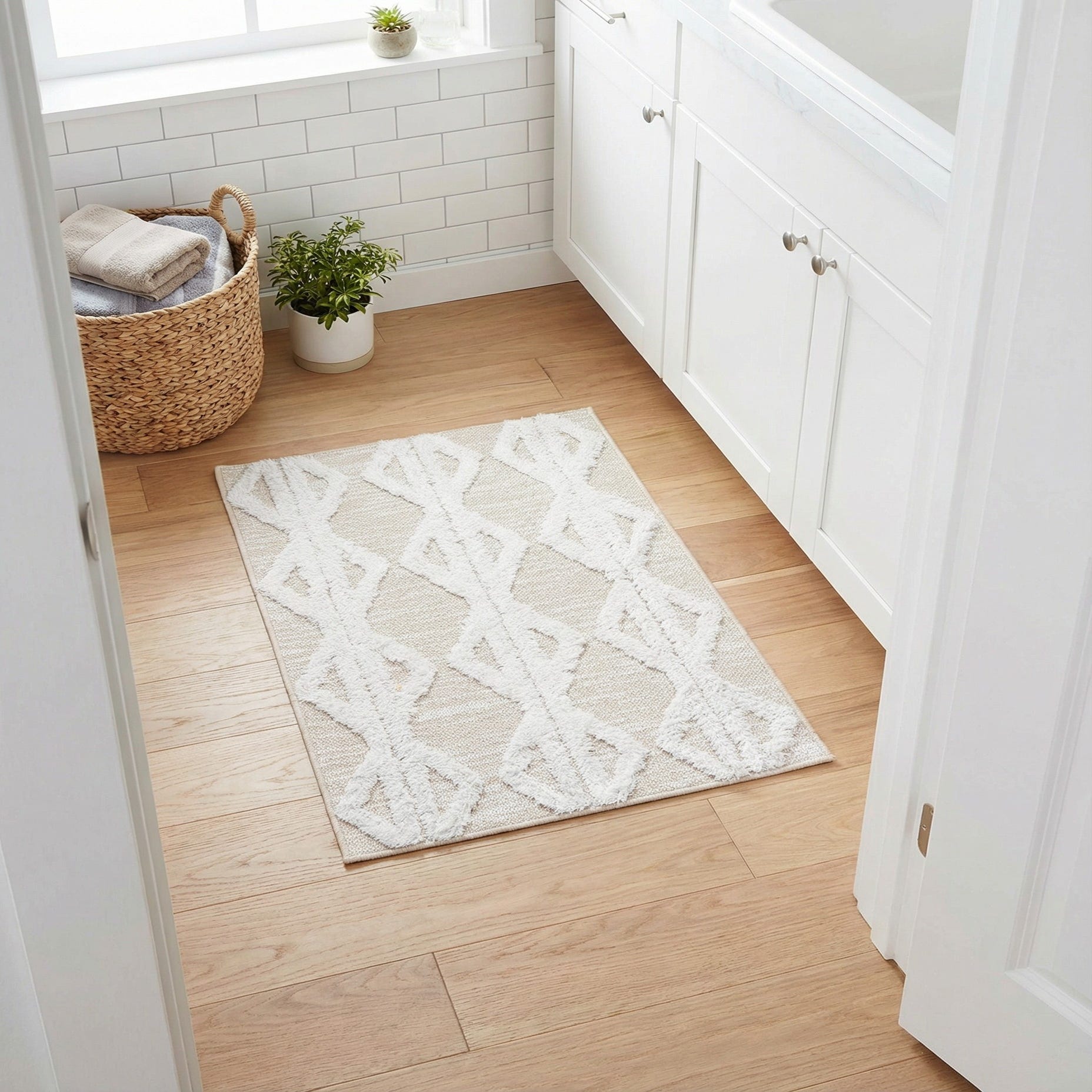 Primary color is Beige. Colors in this rug include: Beige, Ivory.