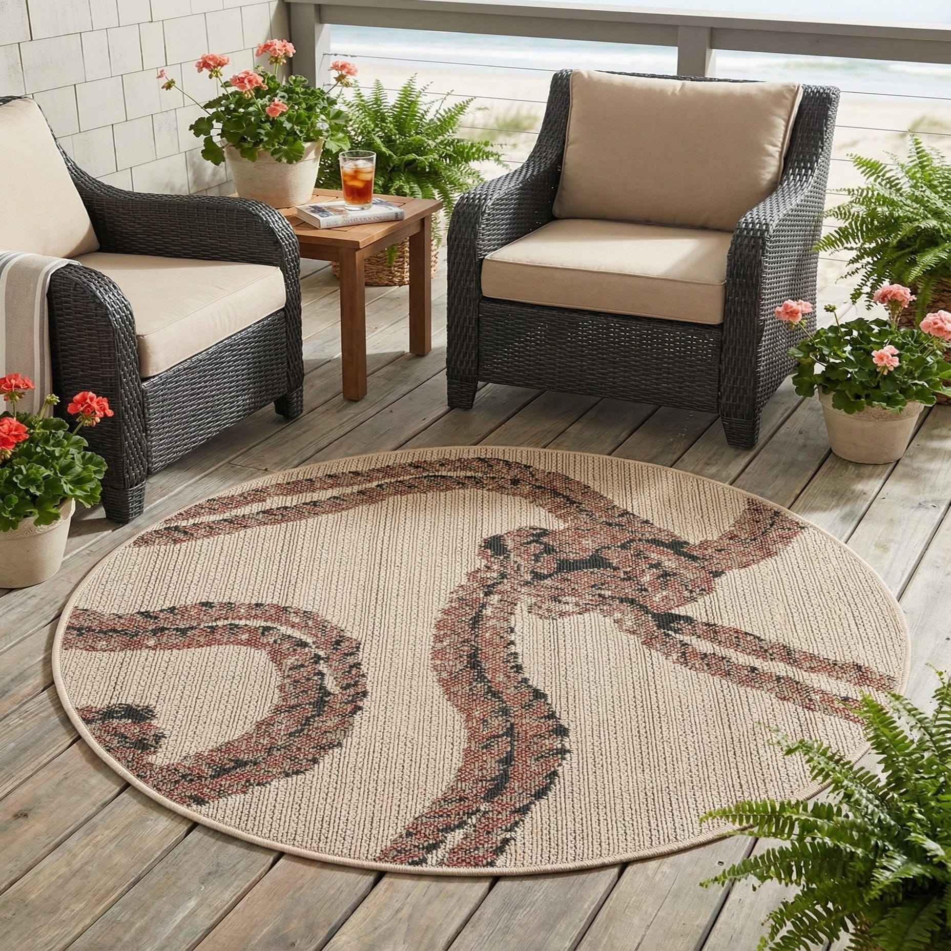 3' x 3' Washable Coastal Indoor / Outdoor Round Rug