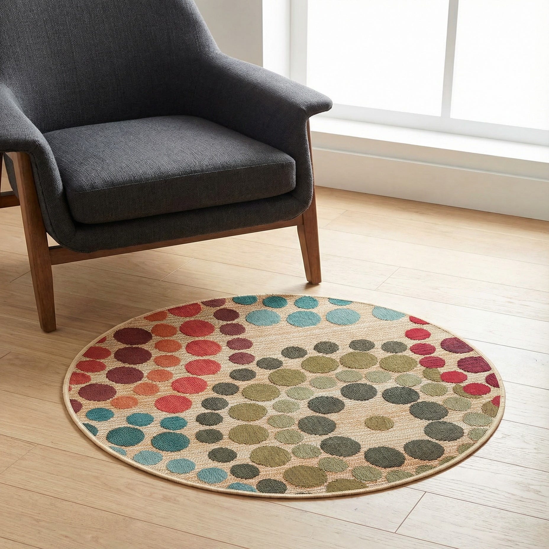 2' 7 x 2' 7 Washable Modern Indoor / Outdoor Round Rug