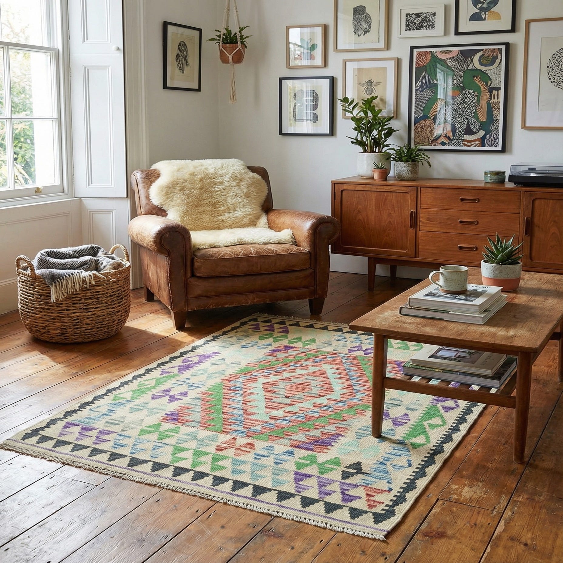 3' x 3' 6 Hand Woven Kilim Maymana Wool Square Rug