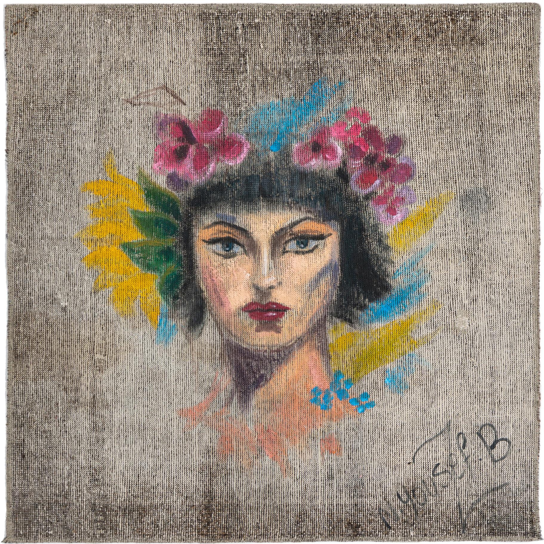 Detail image of 3' 3 x 3' 8  Hand Knotted Ultra Vintage Persian Wool Square Rug