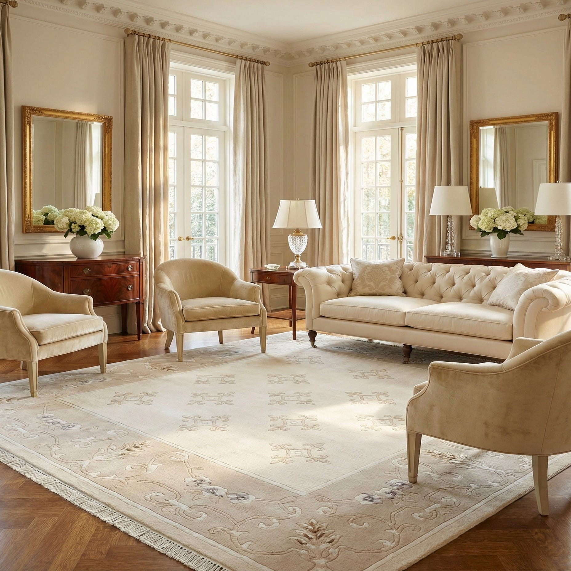 Primary color is Beige. Colors in this rug include: Beige, Brown, Light Brown, Tan, Silver.