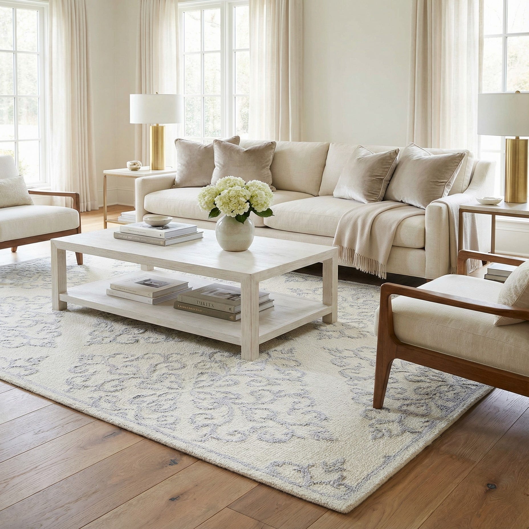 Primary color is Beige. Colors in this rug include: Beige, Cream, Gray, Silver.