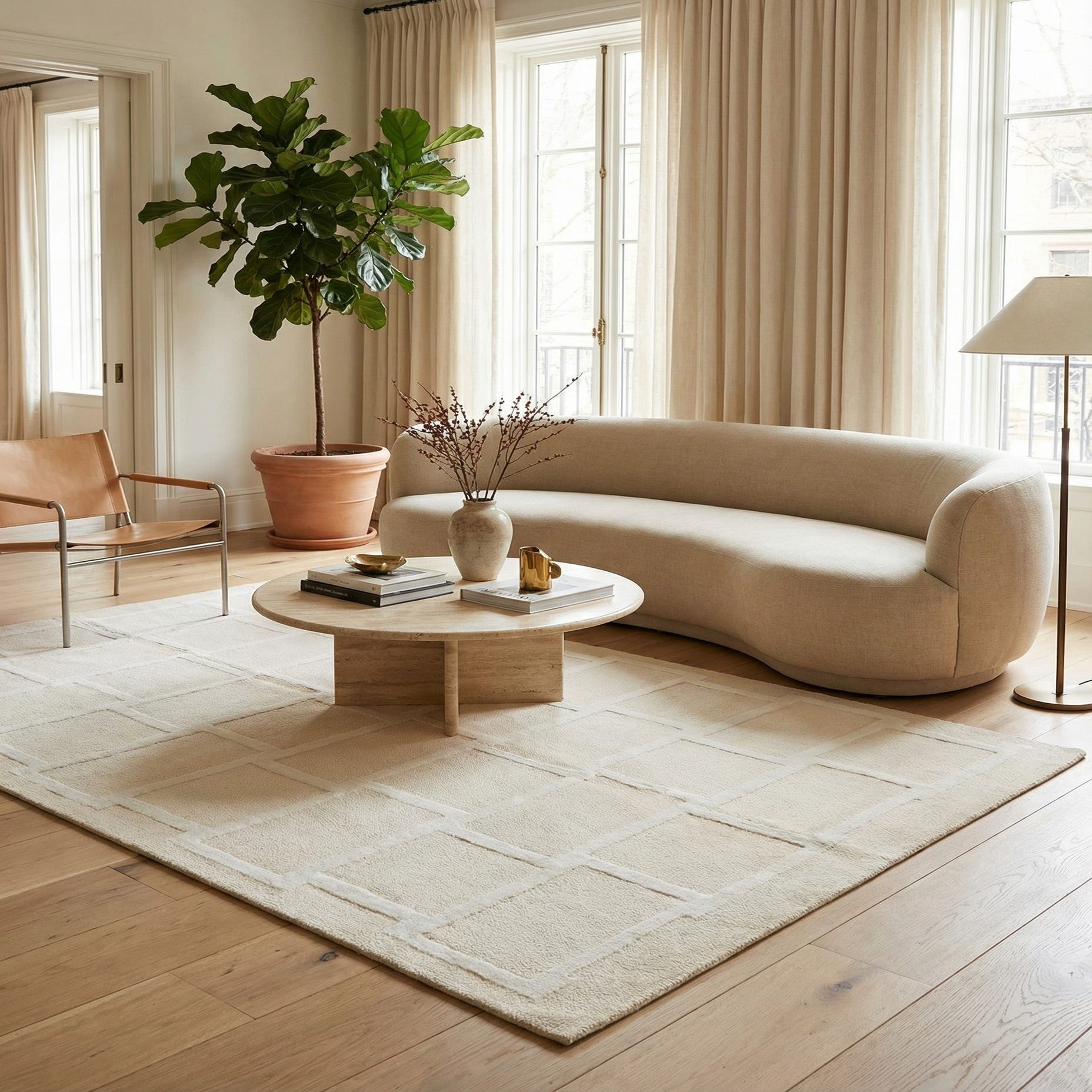 Primary color is Beige. Colors in this rug include: Beige, Ivory.