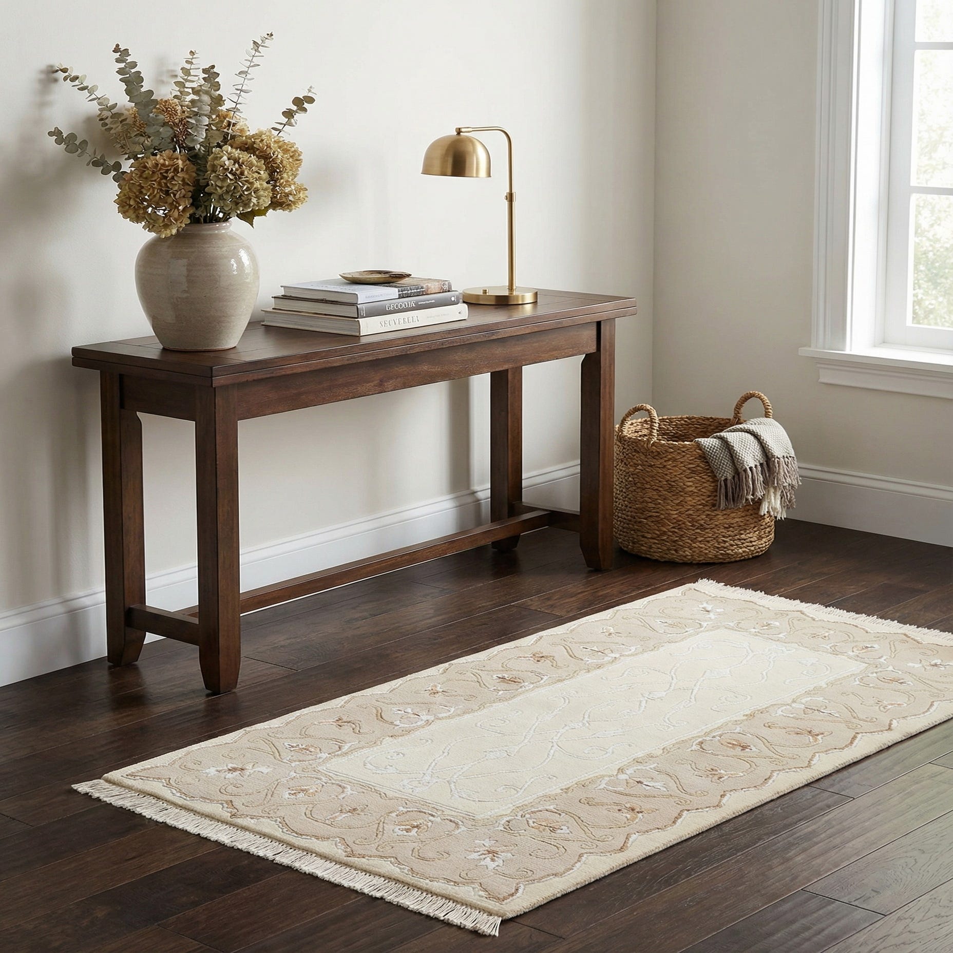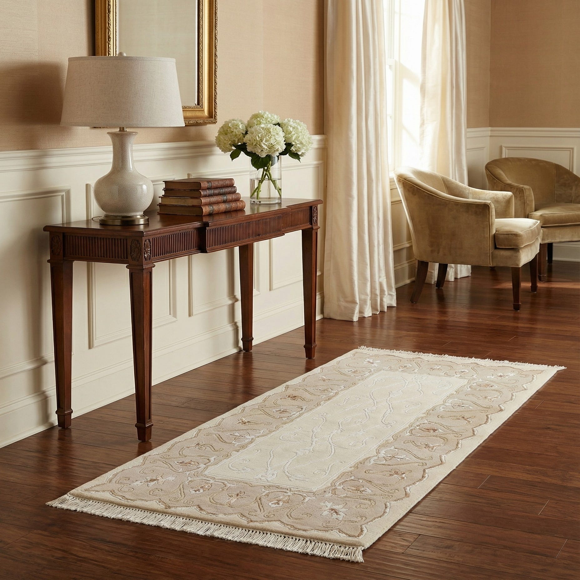 Primary color is Beige. Colors in this rug include: Beige, Ivory, Tan.