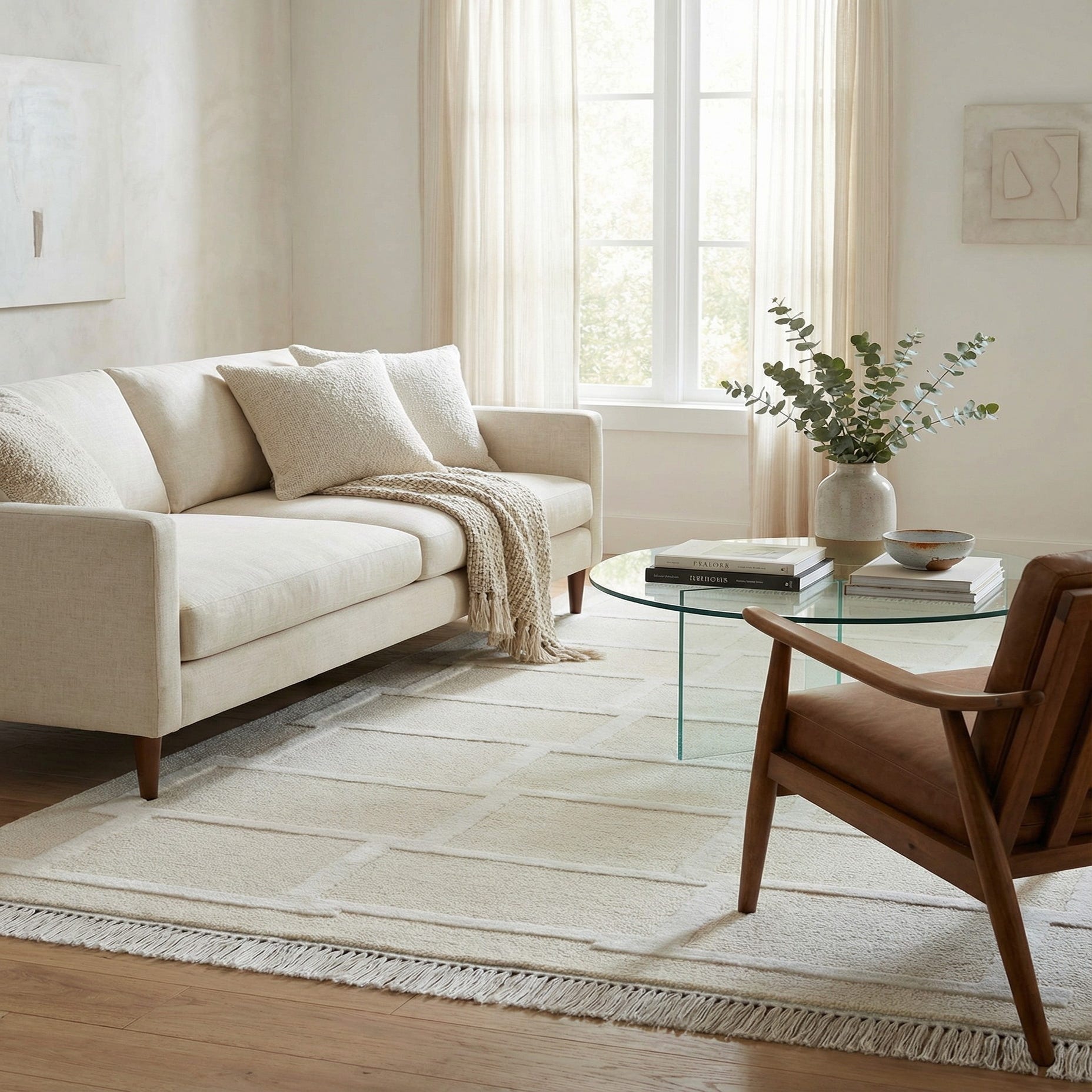 Primary color is Beige. Colors in this rug include: Beige, Ivory.