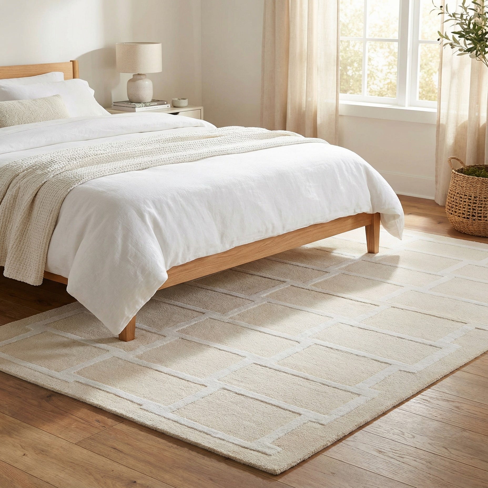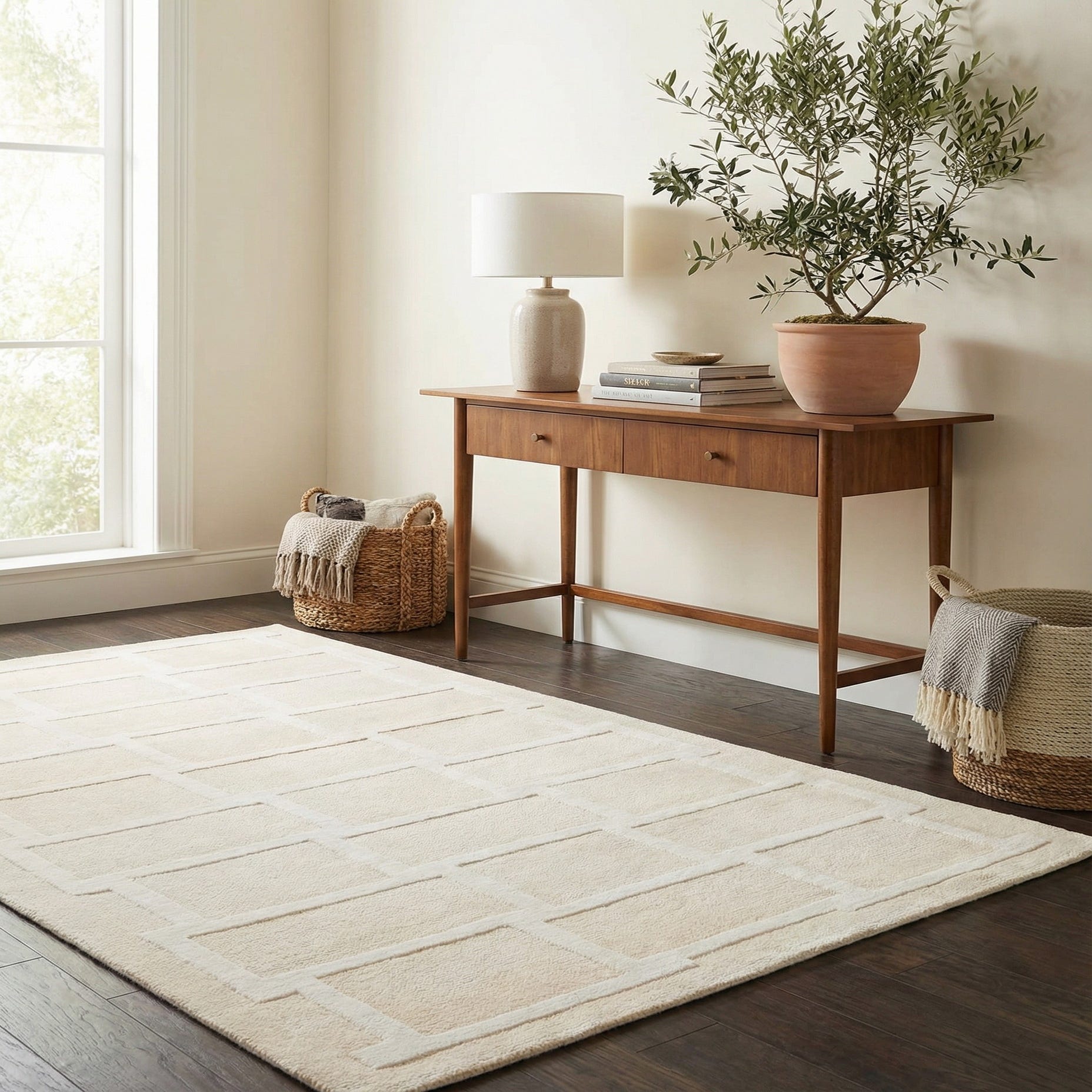 Primary color is Beige. Colors in this rug include: Beige, Ivory.