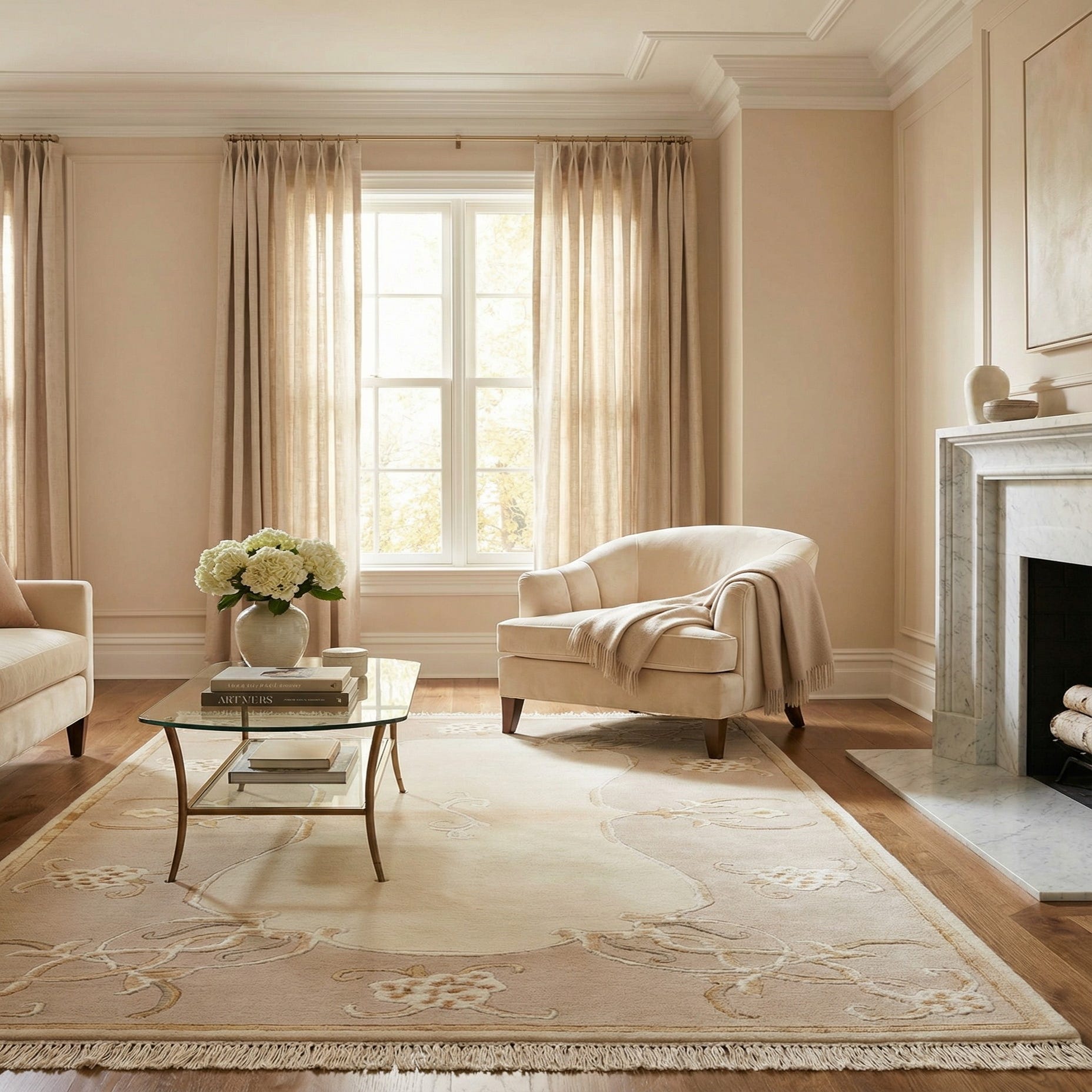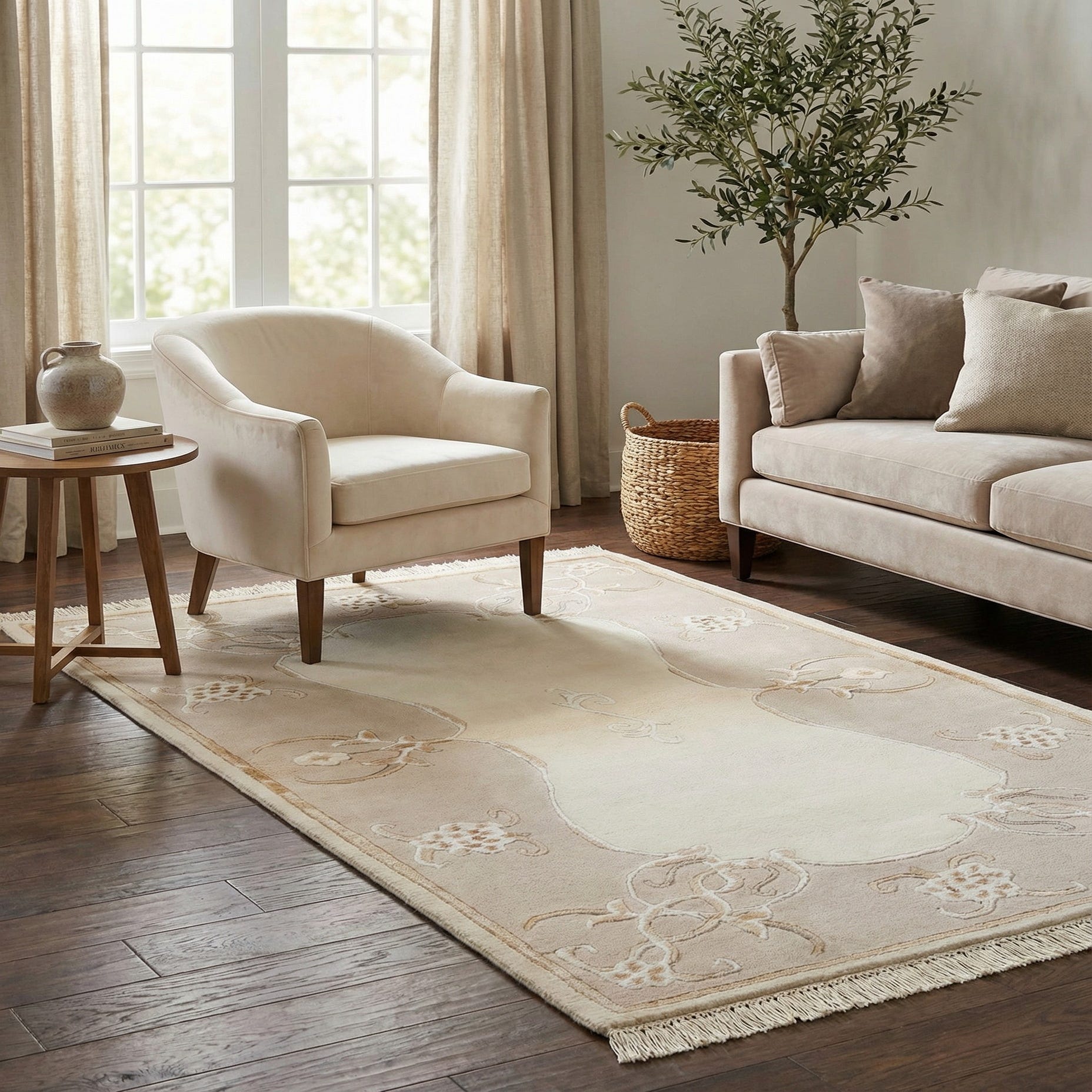 Primary color is Beige. Colors in this rug include: Beige, Ivory, Brown, Light Brown, Tan.