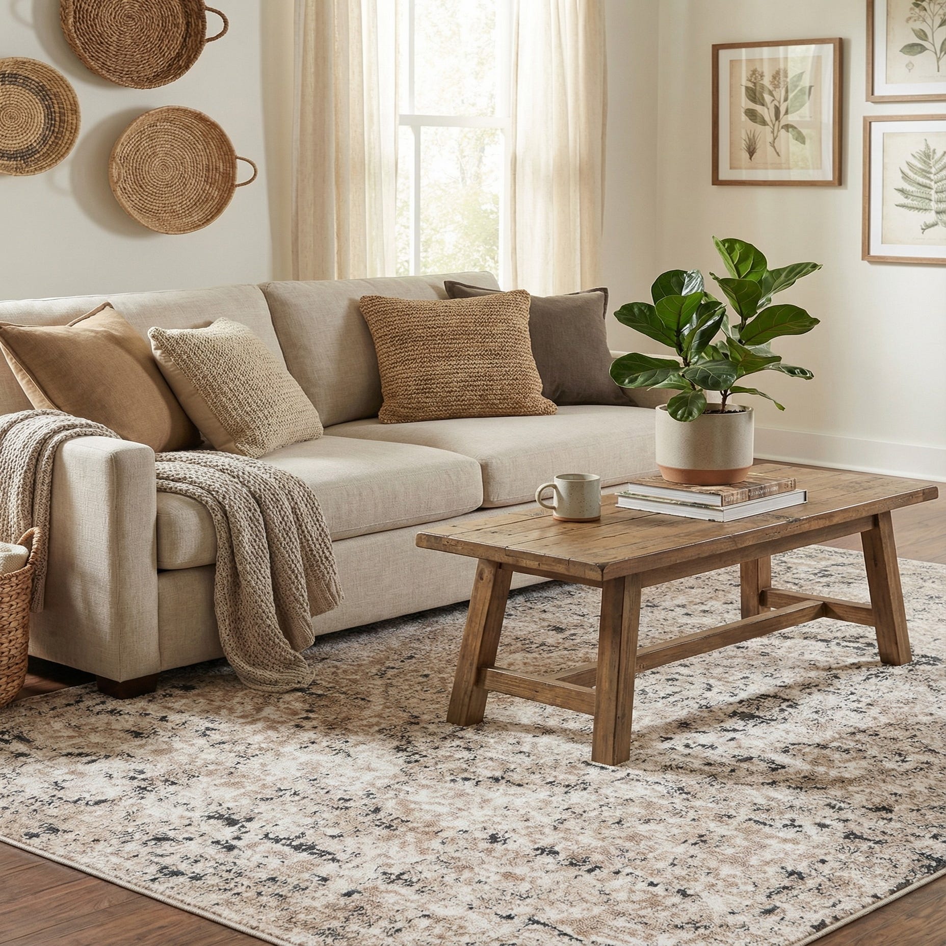 Primary color is Beige. Colors in this rug include: Beige, Gray, Ivory, Light Brown.