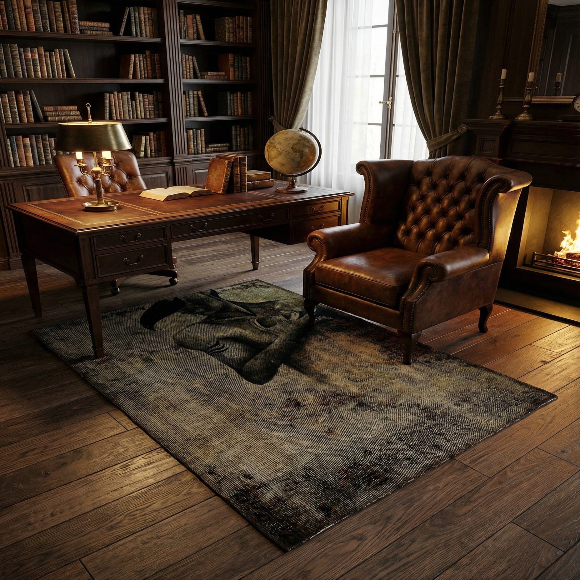 This Persian Ultra Vintage rug is an antique Persian Rug that has been washed, over-dyed, and then shaved down to a low pile. Look at the detail pictures to fully appreciate the uniqueness of this piece.