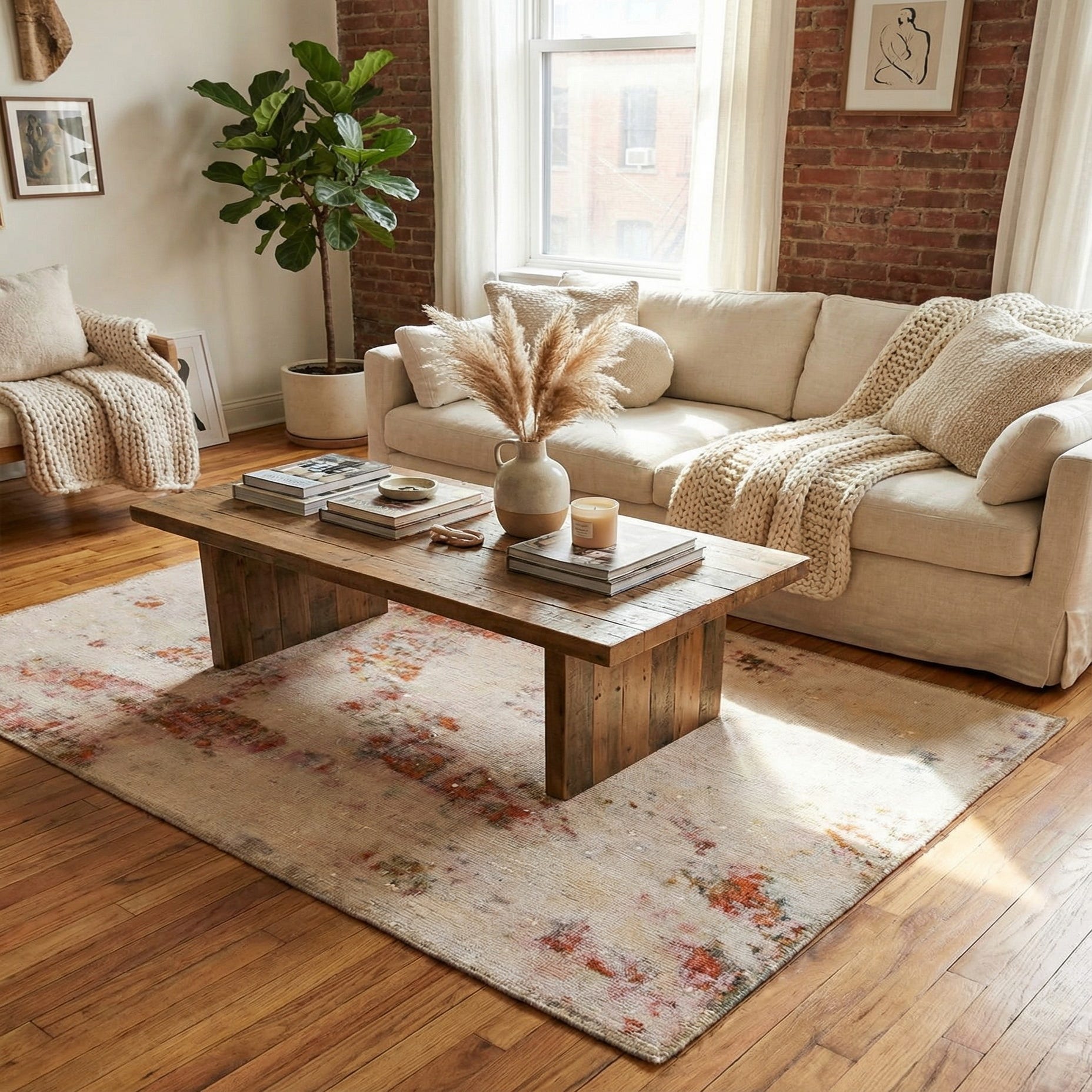 Primary color is Beige. Colors in this rug include: Beige, Brown, Puce, Rust Red, Tan.