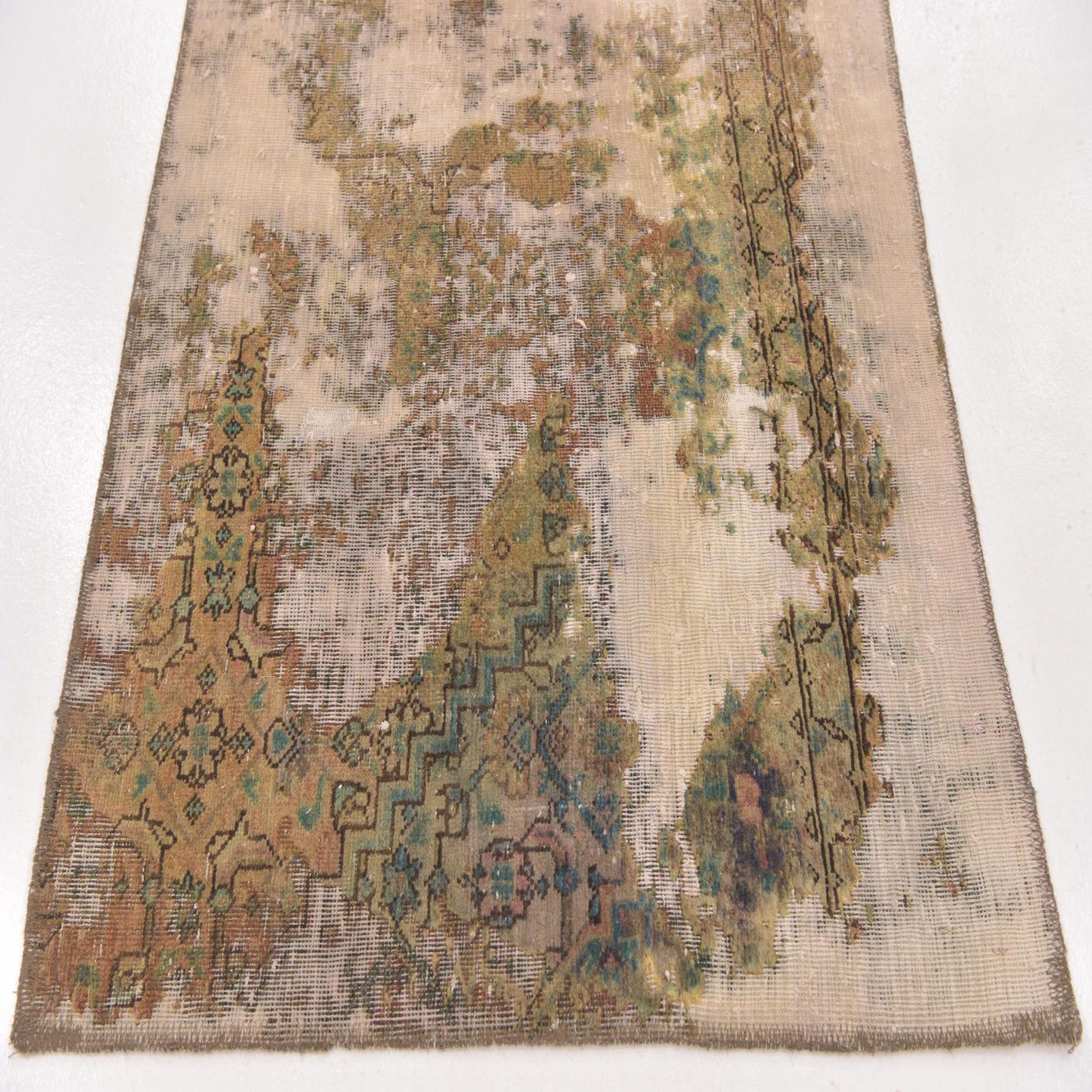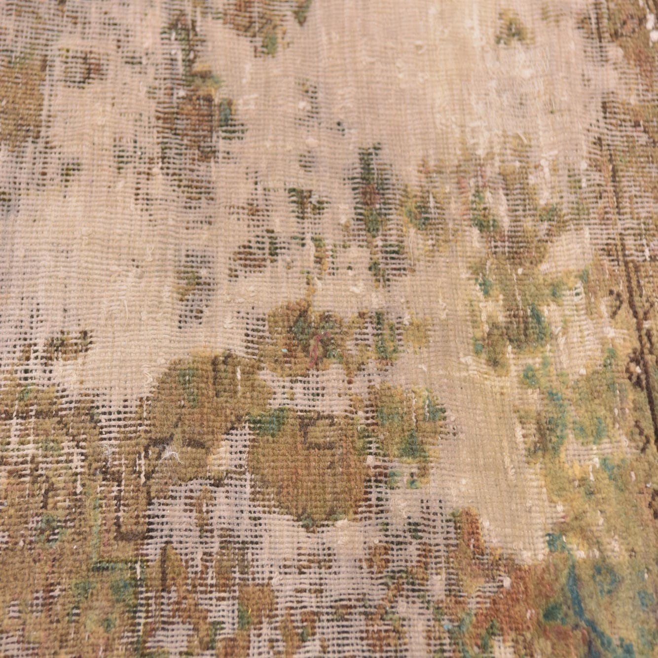 This Persian Ultra Vintage rug is an antique Persian Rug that has been washed, over-dyed, and then shaved down to a low pile. Look at the detail pictures to fully appreciate the uniqueness of this piece.